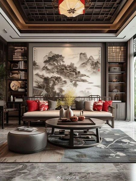 Tranh Thủy Mặc/Tranh Màu Nước Cổ: Mang vẻ đẹp nghệ thuật, trầm mặc, rất hợp với không gian thưởng trà, cà phê.