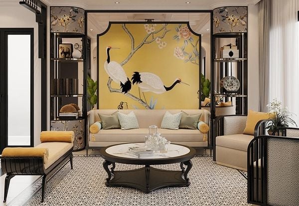 Lựa chọn tranh dán tường phòng khách phải đồng bộ với phong cách kiến trúc tổng thể của không gian.
