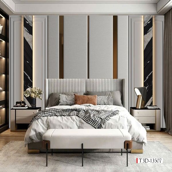 Đối với phong cách Hiện đại/Tối giản (Minimalism), đề cao sự tinh gọn, chức năng và màu trung tính (Be, Ghi), tranh dán tường phải ưu tiên các họa tiết Hình học Trừu tượng, mảng màu đơn sắc hoặc các đường nét sắc nét