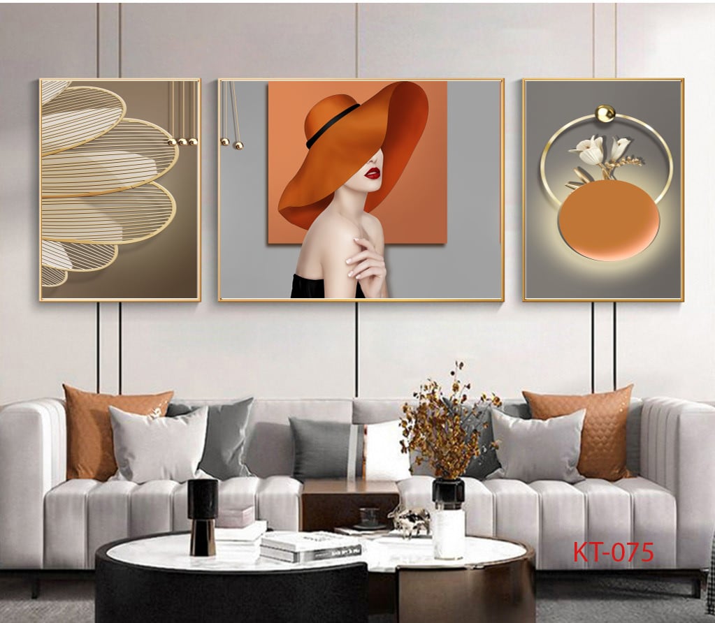 TRANH TREO PHÒNG KHÁCH SOFA - TRANH TRANG TRÍ - TRANH TREO TƯỜNG CÔ GÁI NGHỆ THUẬT - KIỂU TRANH GHÉP BỘ 3 BỨC