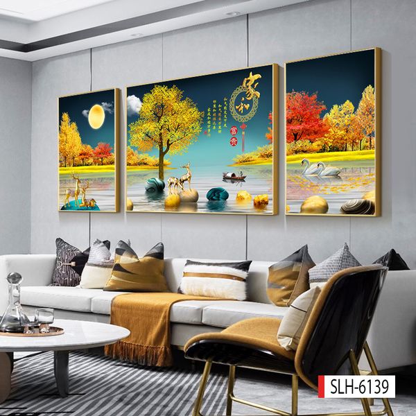 | Thương hiệu: Tranh 3D Tùng Dương | Hình thức: Tranh treo tường ghép bộ 3 bức | Tên: Tranh Hươu Tài Lộc |