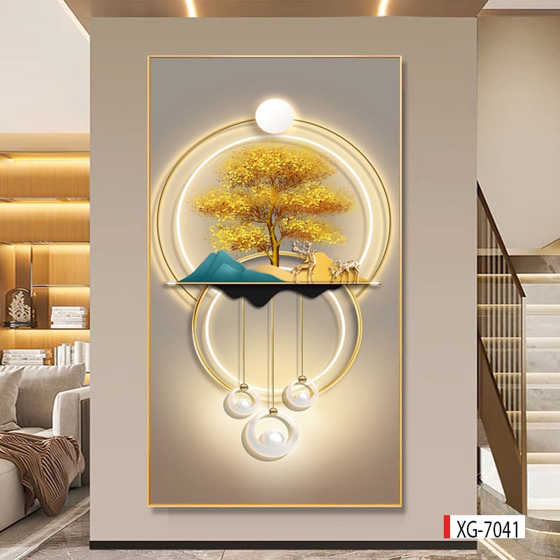 TRANH TREO HÀNH LANG LỐI ĐI - TRANH TRANG TRÍ - TRANH TREO TƯỜNG HƯƠU TÀI LỘC - KIỂU TRANH DỌC