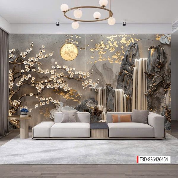 - Tranh vải 3D dán tường - vải lụa kim sa phủ bóng ít bám bụi, dễ lau chùi vệ sinh, thi công nhanh gọn.