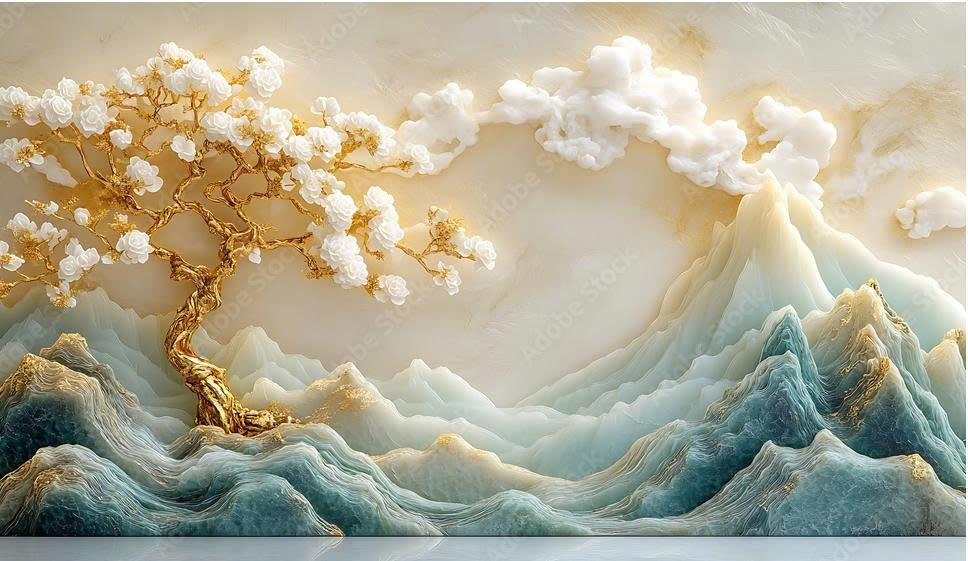 TRANH DÁN TƯỜNG PHÒNG KHÁCH - TRANH TRANG TRÍ - TRANH DÁN TƯỜNG TIỂU CẢNH - KIỂU TRANH LIỀN KHỔ