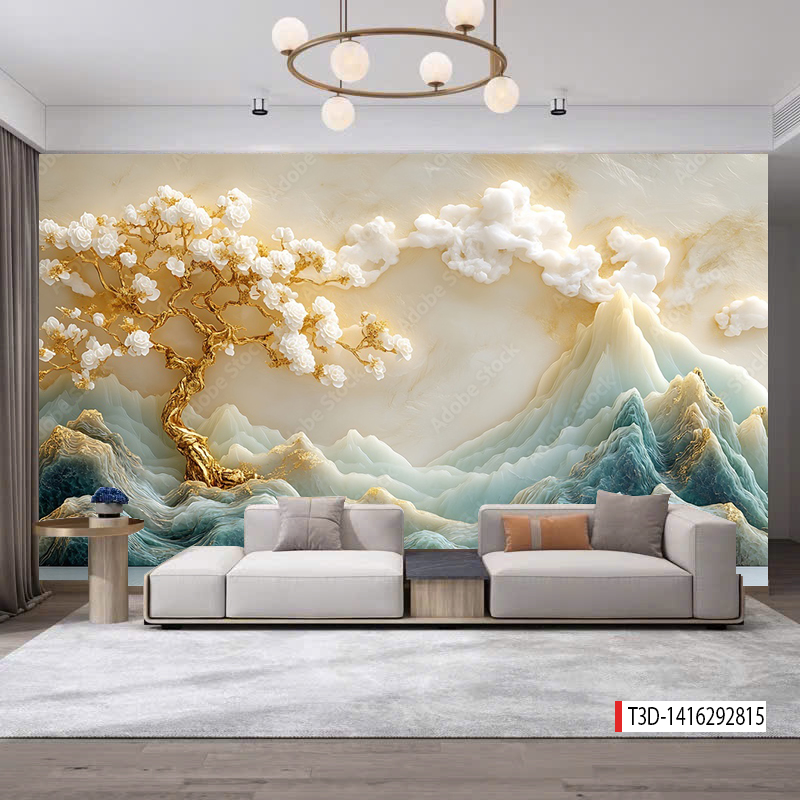 - Tranh vải 3D dán tường - vải lụa kim sa phủ bóng ít bám bụi, dễ lau chùi vệ sinh, thi công nhanh gọn.