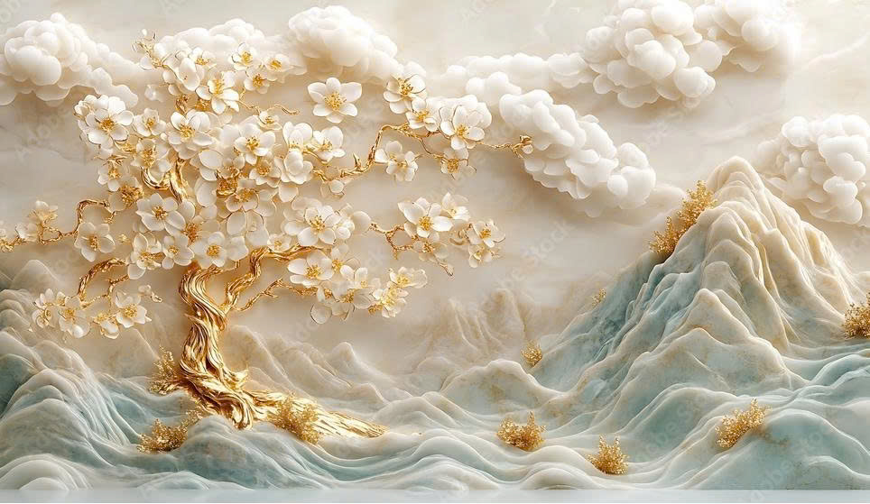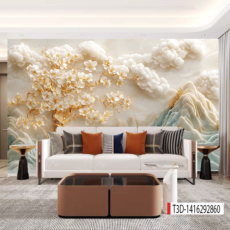 - Tranh vải 3D dán tường - vải lụa kim sa phủ bóng ít bám bụi, dễ lau chùi vệ sinh, thi công nhanh gọn.