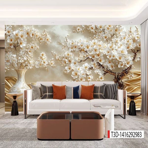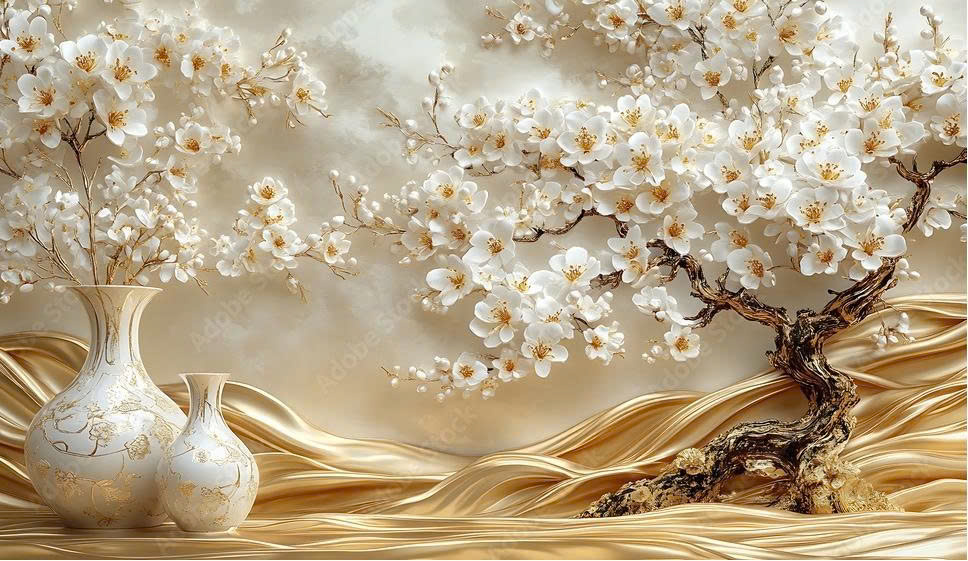 - Tranh vải 3D dán tường - vải lụa kim sa phủ bóng ít bám bụi, dễ lau chùi vệ sinh, thi công nhanh gọn.