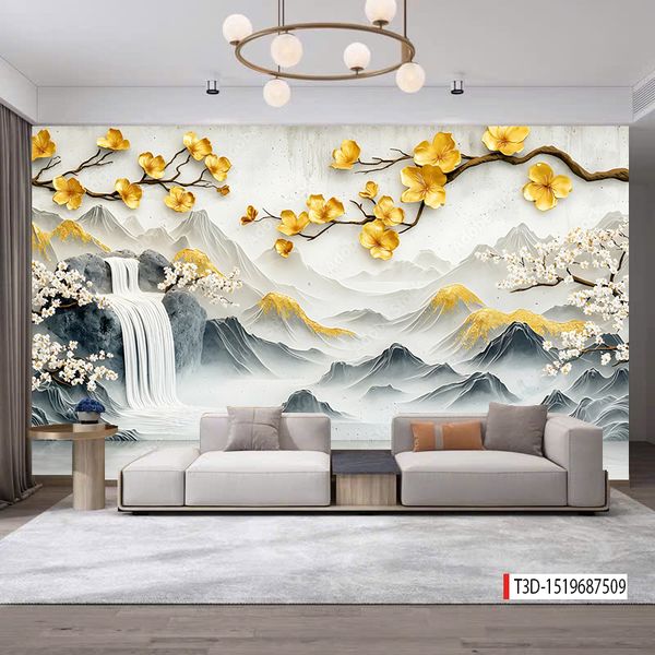 - Tranh vải 3D dán tường - vải lụa kim sa phủ bóng ít bám bụi, dễ lau chùi vệ sinh, thi công nhanh gọn.
