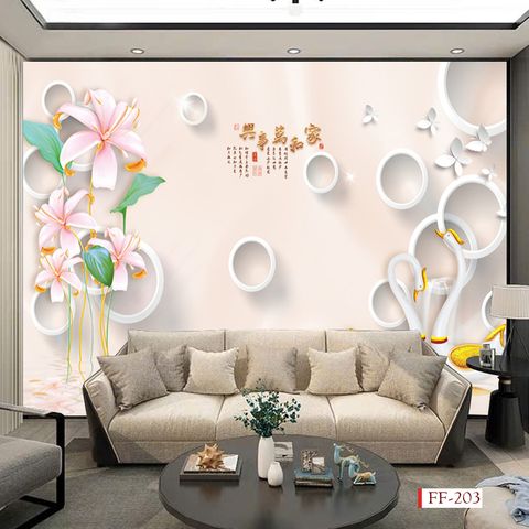 - Tranh vải 3D dán tường - vải lụa kim sa phủ bóng ít bám bụi, dễ lau chùi vệ sinh, thi công nhanh gọn.