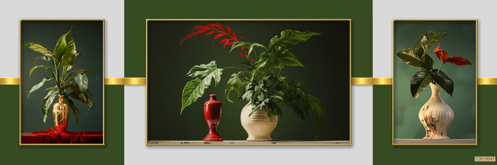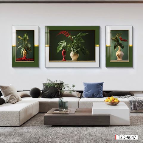 | Thương hiệu: Tranh 3D Tùng Dương | Hình thức: Tranh treo tường ghép bộ 3 bức | Tên: Tranh Hoa Bình Hoa |