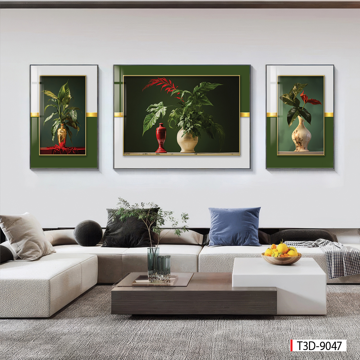 TRANH TREO PHÒNG KHÁCH HIỆN ĐẠI - TRANH TRANG TRÍ - TRANH TREO TƯỜNG HOA - BÌNH HOA - KIỂU TRANH GHÉP BỘ 3 BỨC