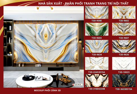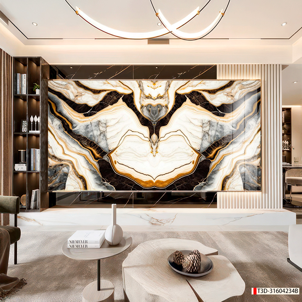 | Xuất xứ: Tranh 3D Tùng Dương, thành phố Hải Phòng, Việt Nam | Vị trí áp dụng: phòng khách, phòng ngủ, chiếu nghỉ, quầy lễ tân... | Phong cách: Vân đá đối xứng |