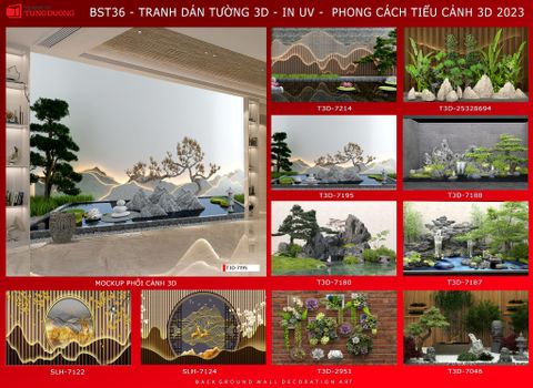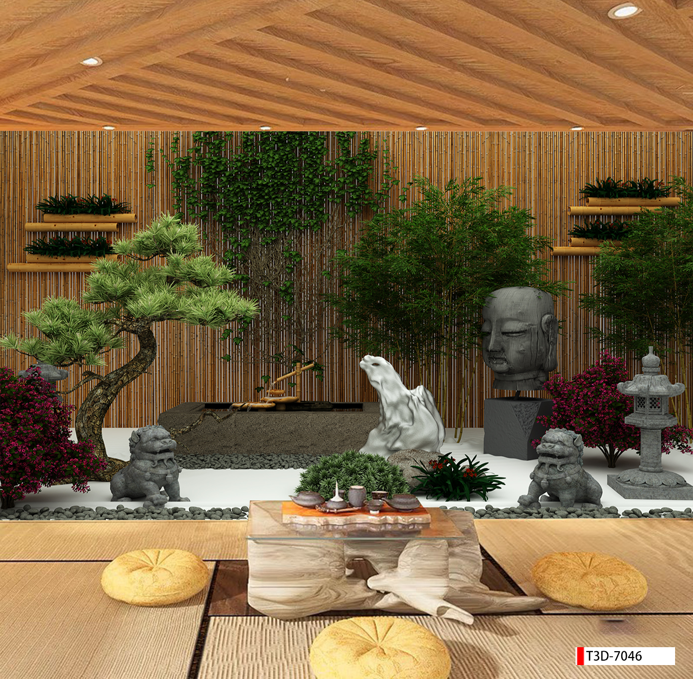 | Thương hiệu: Tranh 3D Tùng Dương | Hình thức: tranh vải dán tường | Họa tiết: tiểu cảnh cây xanh, núi đá |