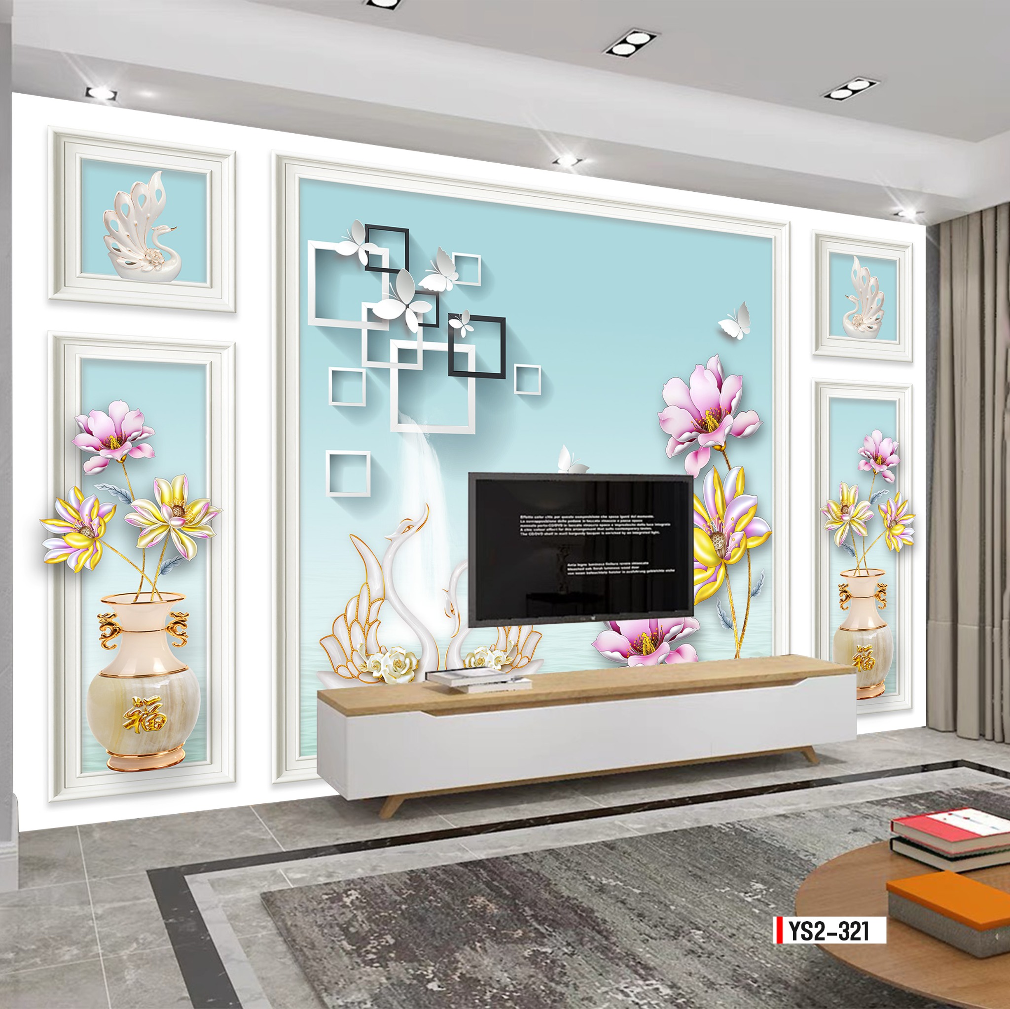 - Tranh vải 3D dán tường - vải lụa kim sa phủ bóng ít bám bụi, dễ lau chùi vệ sinh, thi công nhanh gọn.