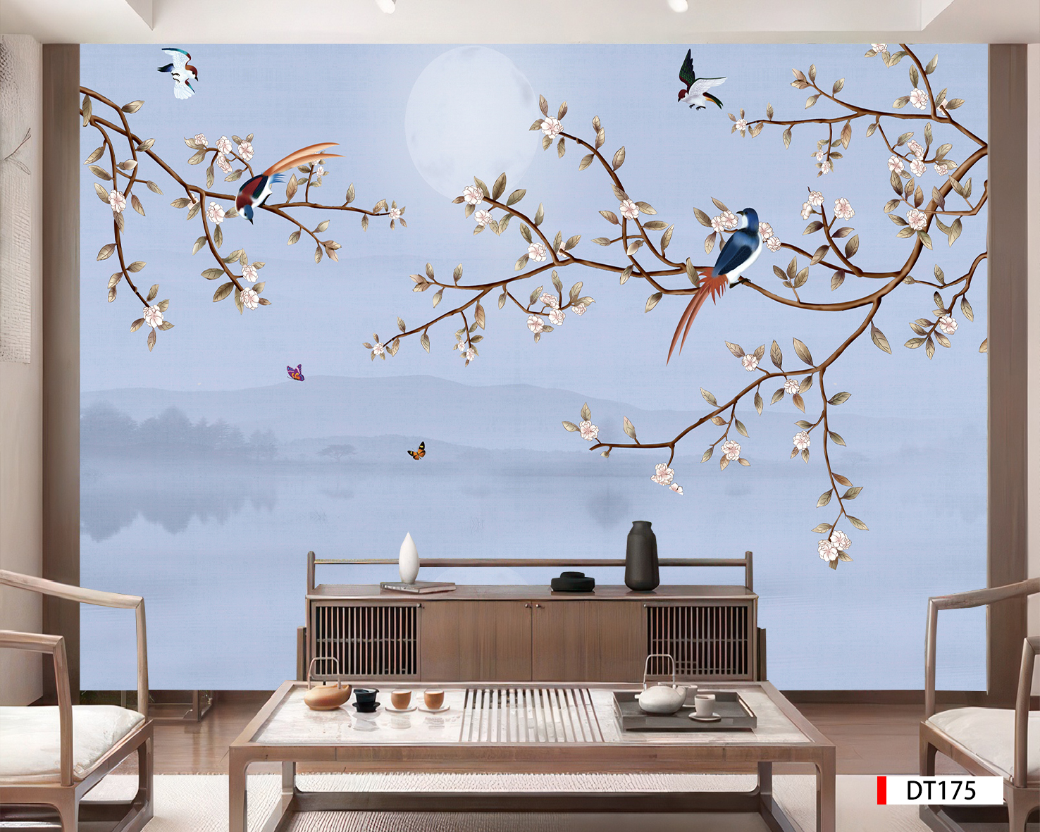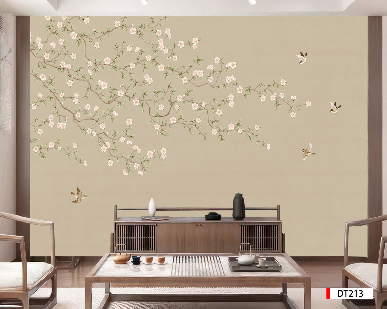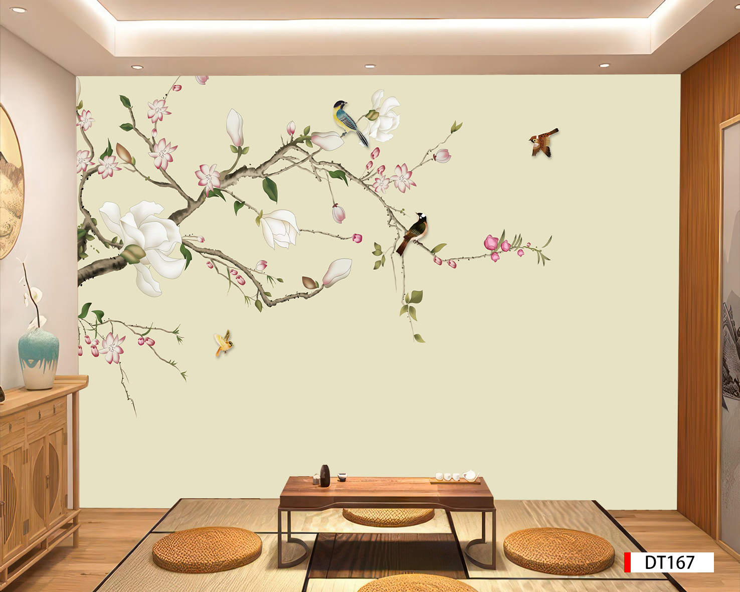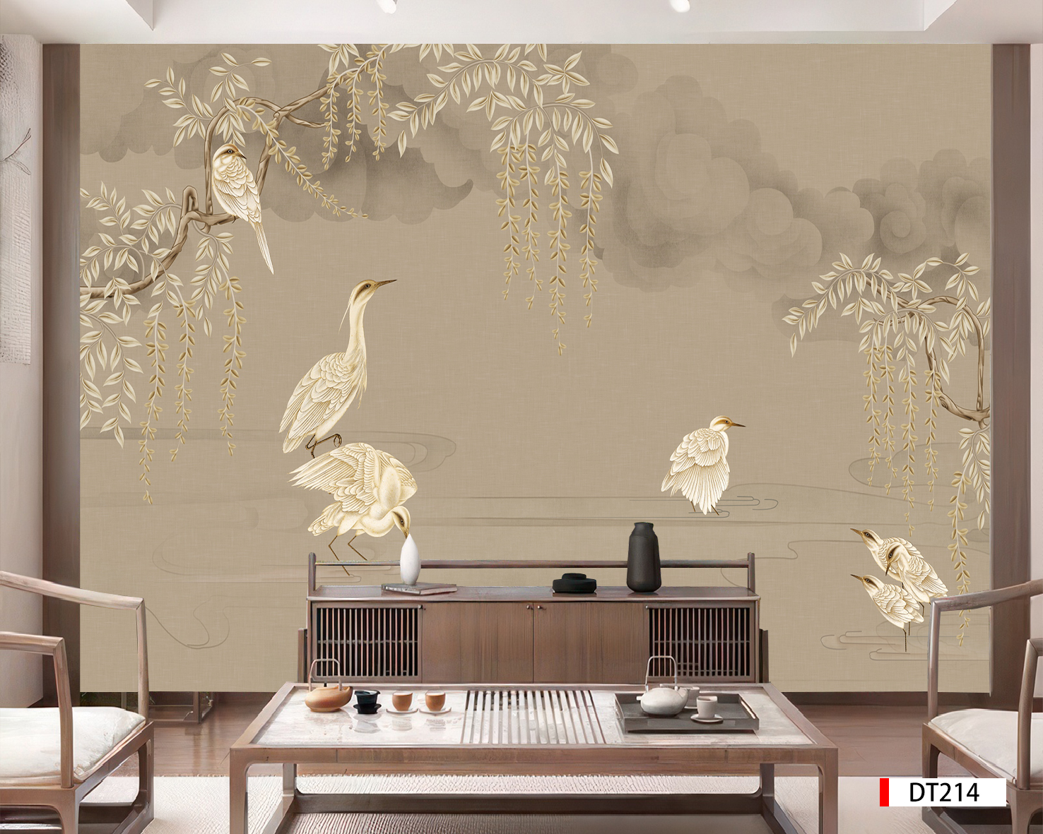 - Tranh vải 3D dán tường - vải lụa kim sa phủ bóng ít bám bụi, dễ lau chùi vệ sinh, thi công nhanh gọn.