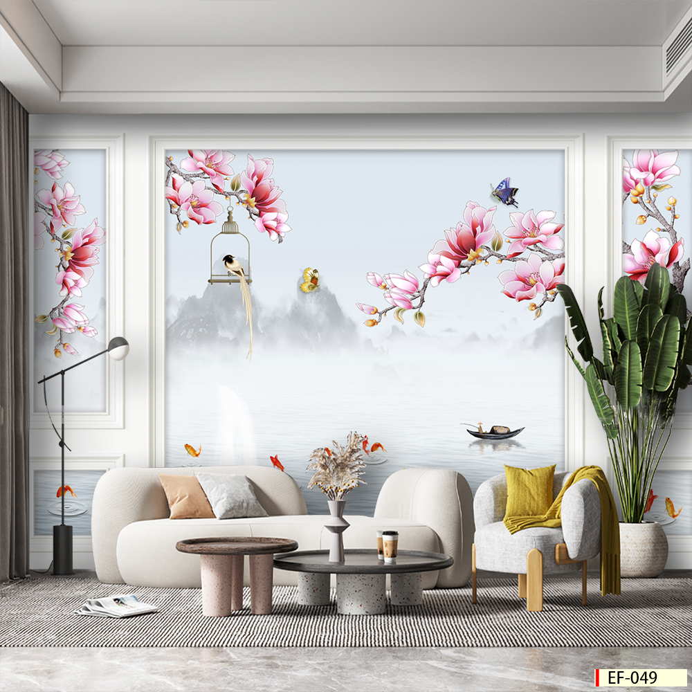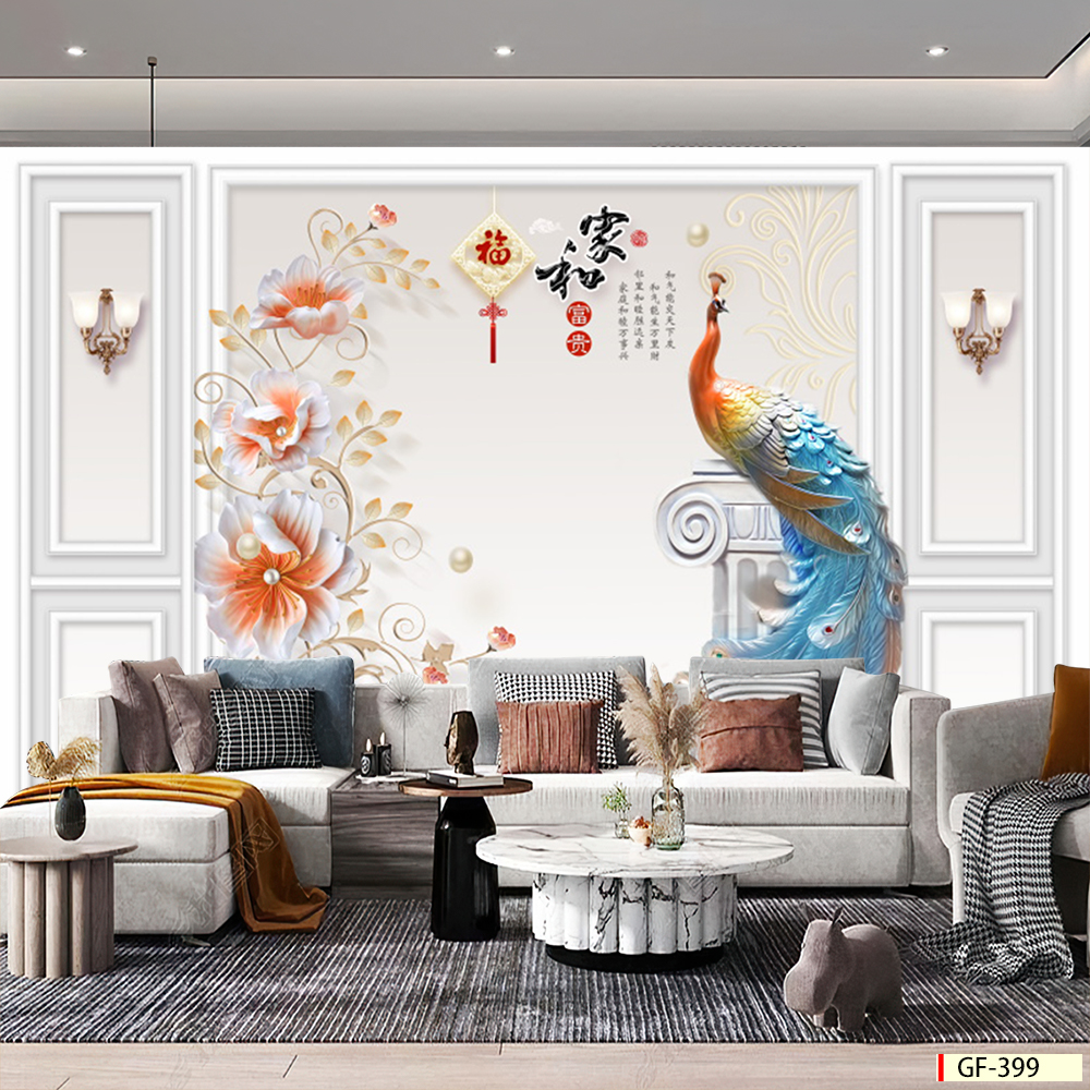 - Tranh vải 3D dán tường - vải lụa kim sa phủ bóng ít bám bụi, dễ lau chùi vệ sinh, thi công nhanh gọn.