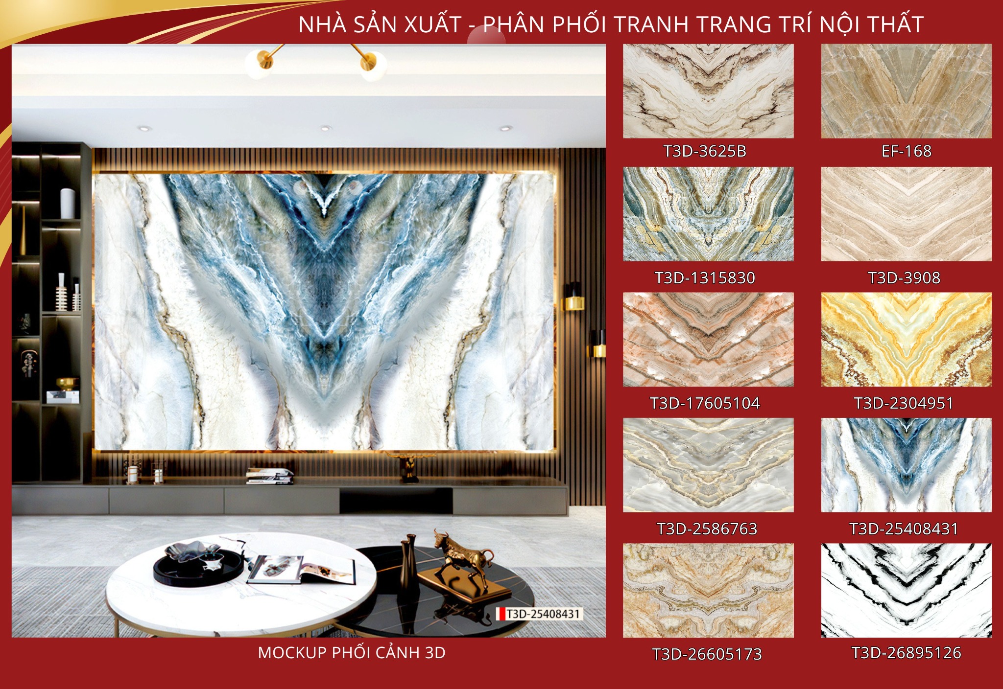 TRANH PVC ỐP TƯỜNG - VÁCH TRANG TRÍ PHÒNG KHÁCH, SAU SOFA, LỄ TÂN - TRANH VÂN ĐÁ ĐỐI XỨNG