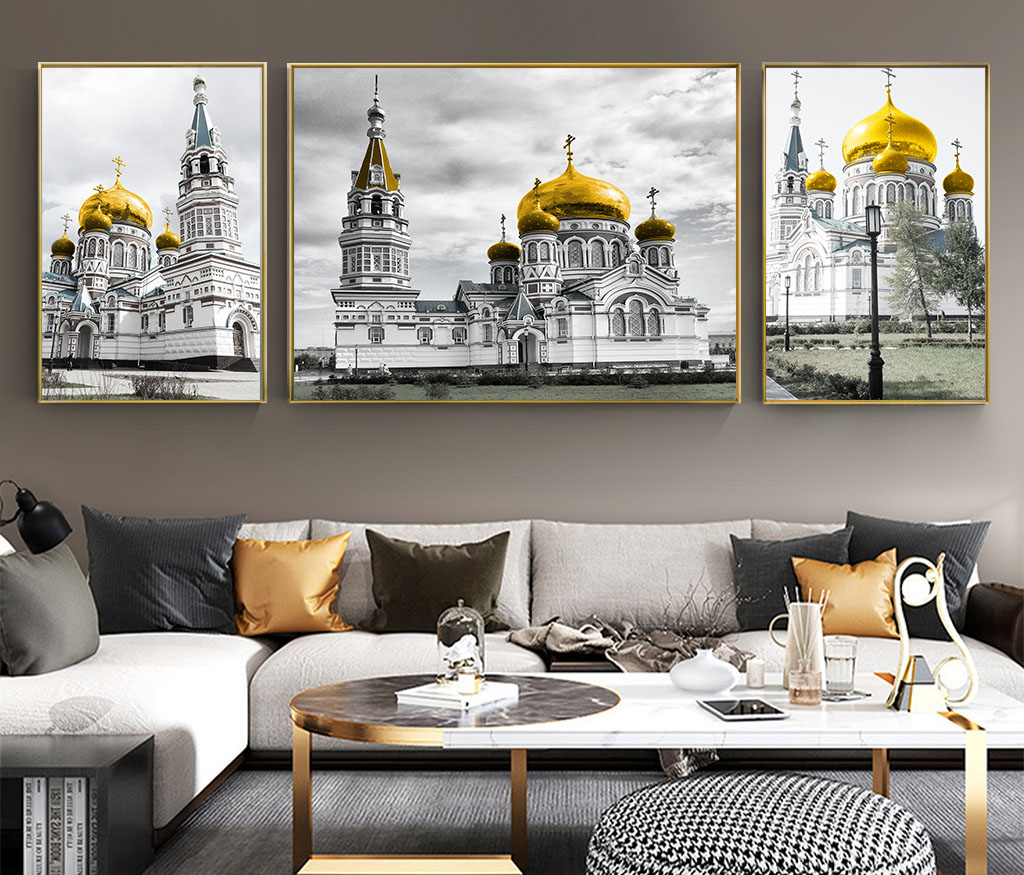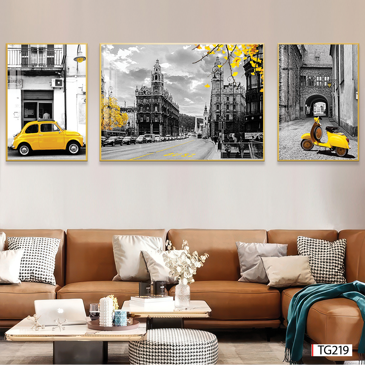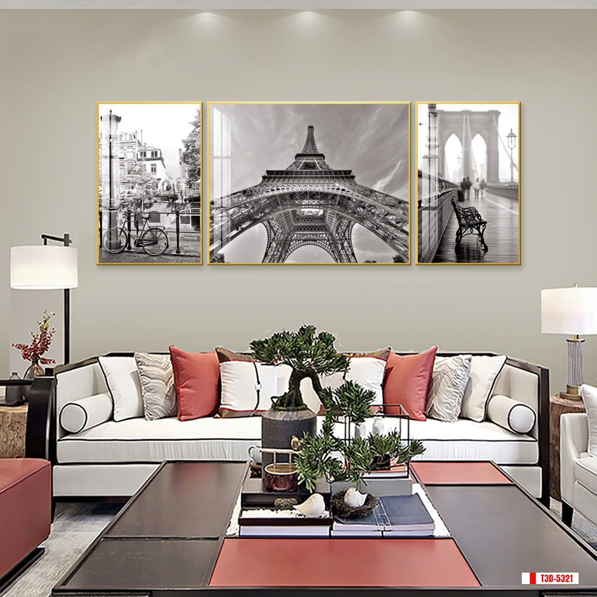 BST65 - TRANH TREO TƯỜNG KHUNG HỢP KIM TITAN - TRANG TRÍ PHÒNG KHÁCH, SAU SOFA - CHỦ ĐỀ PHONG CẢNH KIẾN TRÚC CHÂU ÂU - GHÉP BỘ 3 BỨC
