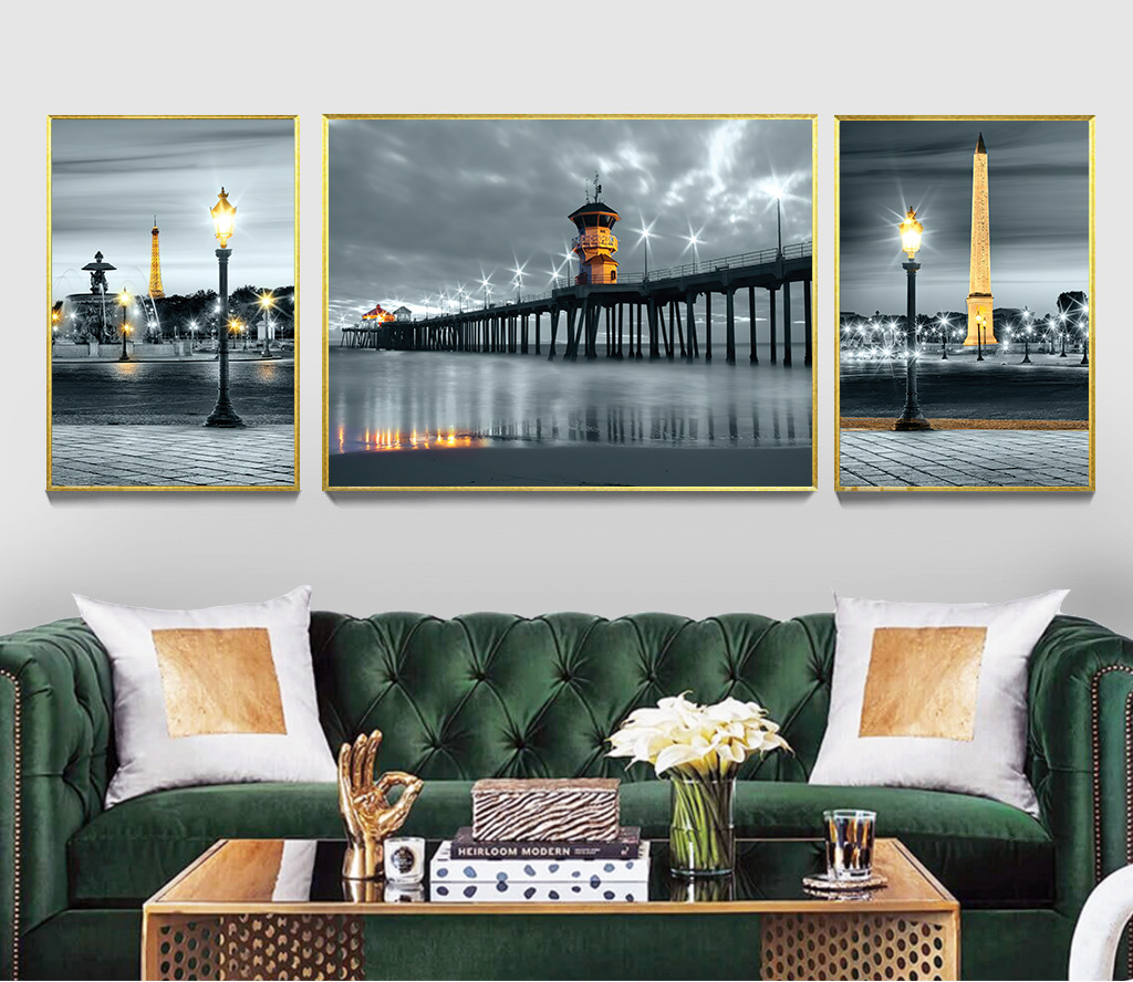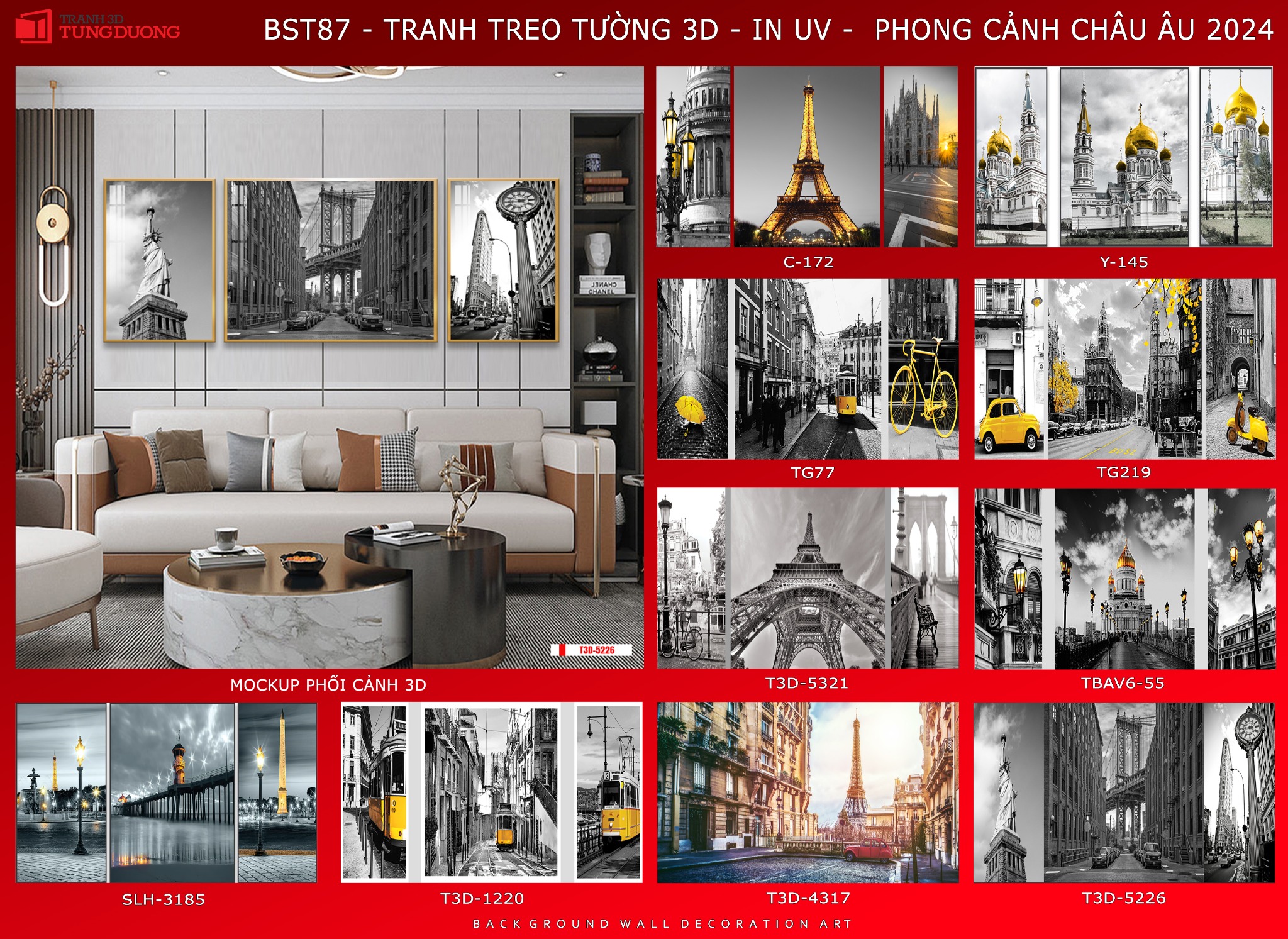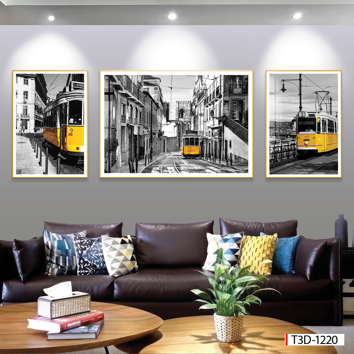 BST65 - TRANH TREO TƯỜNG KHUNG HỢP KIM TITAN - TRANG TRÍ PHÒNG KHÁCH, SAU SOFA - CHỦ ĐỀ PHONG CẢNH KIẾN TRÚC CHÂU ÂU - GHÉP BỘ 3 BỨC