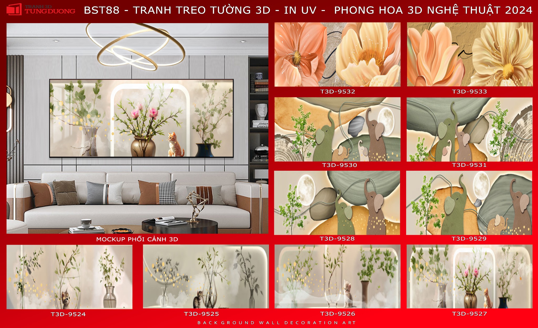 240 x 120 x 1 Bức / Khung Hợp Kim Titan Vàng / T3D-9532 - 2,880,000₫