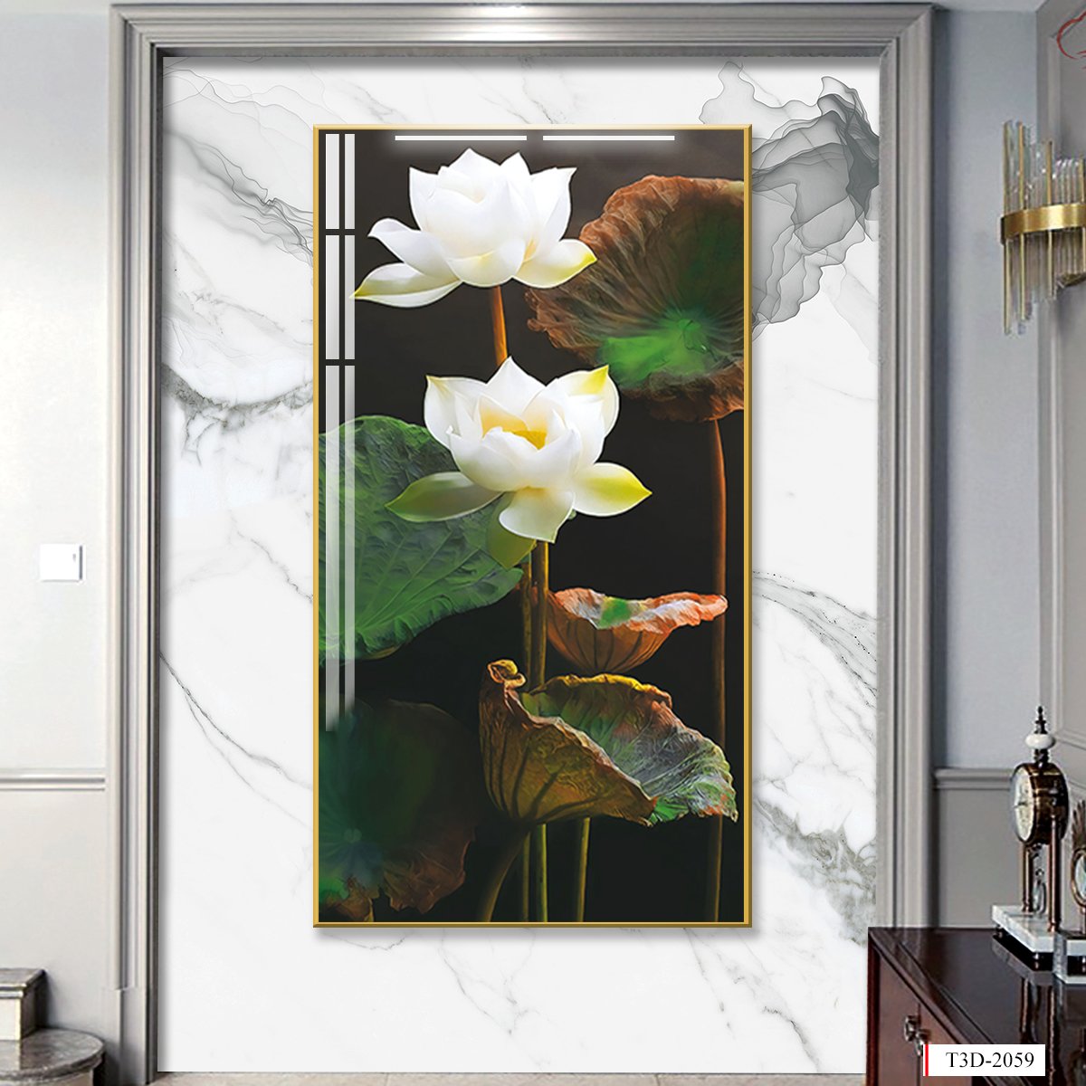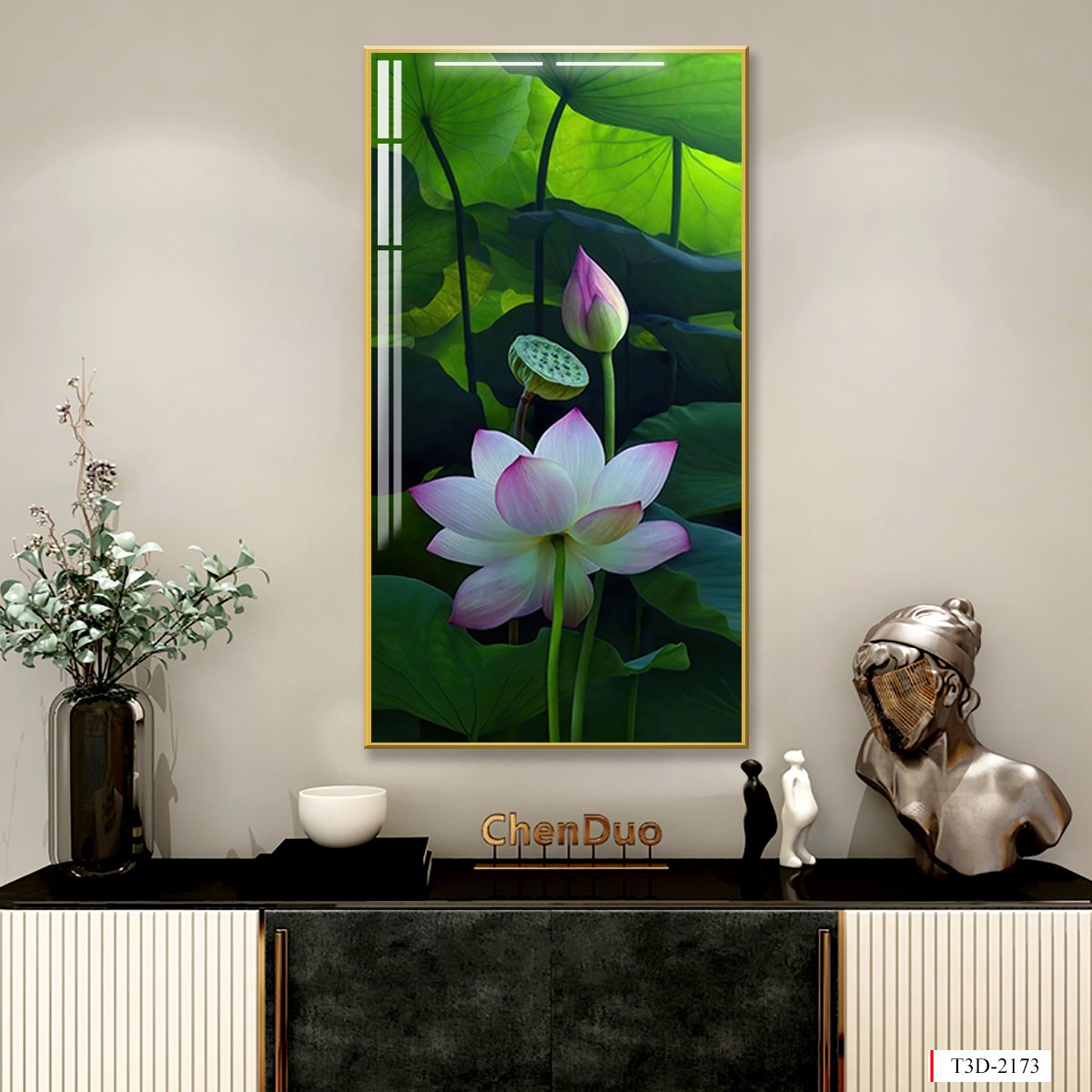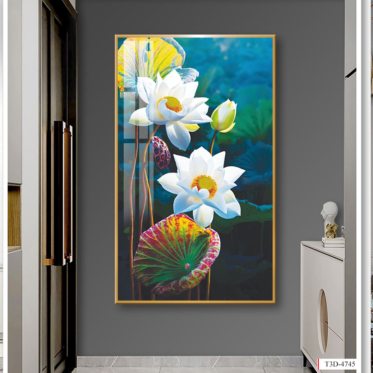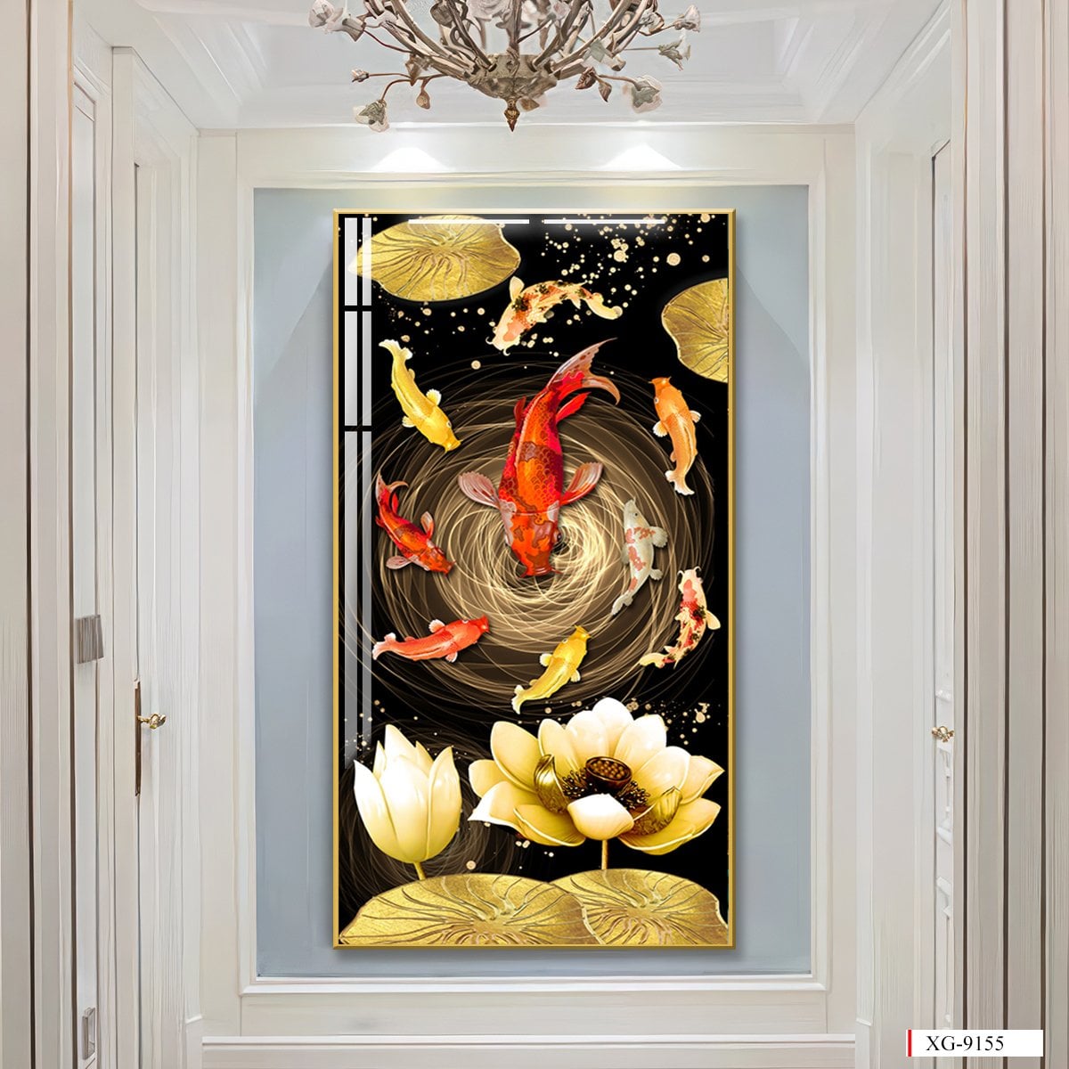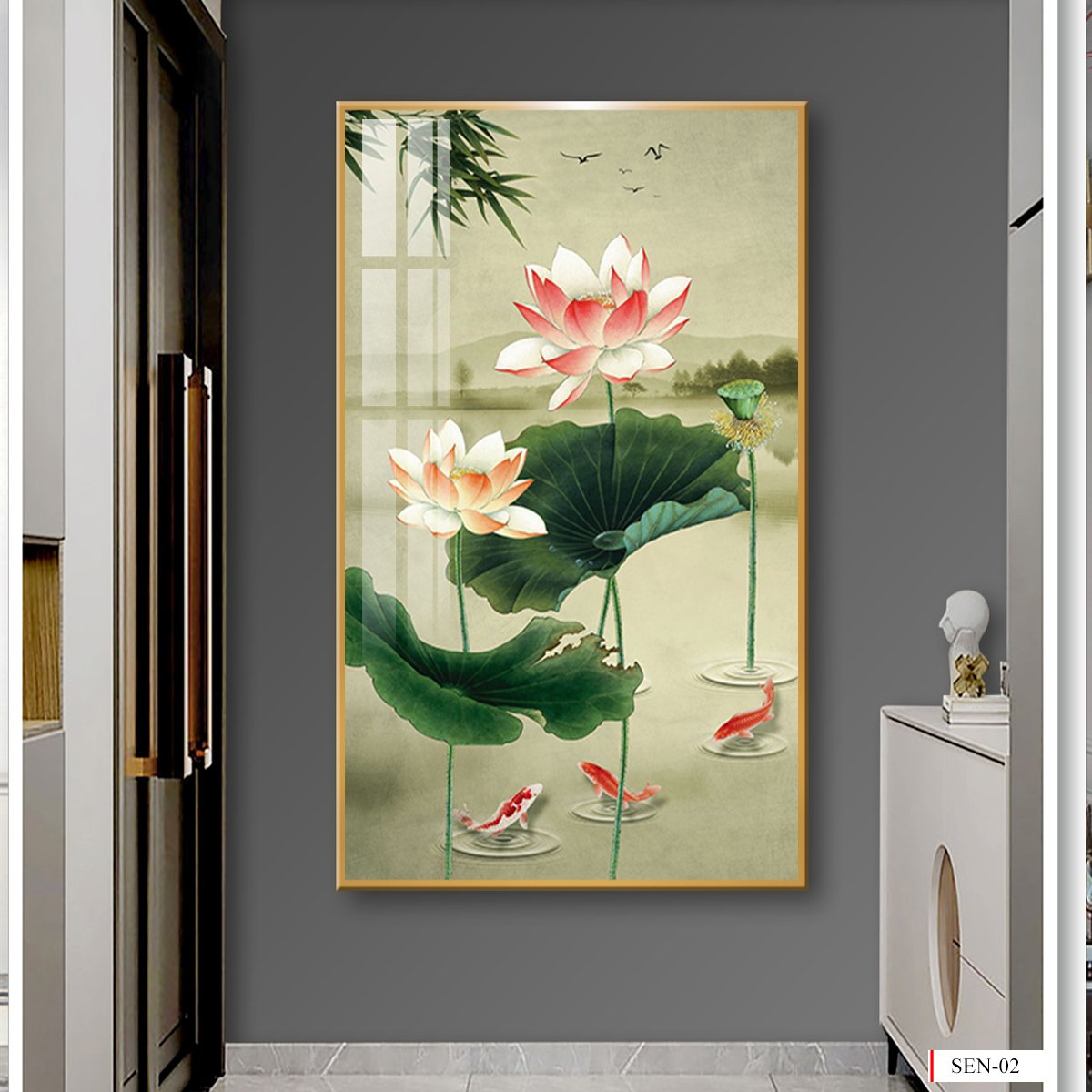 BST139 - TRANH TREO TƯỜNG - TRANG TRÍ HÀNH LANG, SẢNH, LỐI ĐI - CHỦ ĐỀ HOA SEN CÁ CHÉP - TRANH ĐƠN DỌC