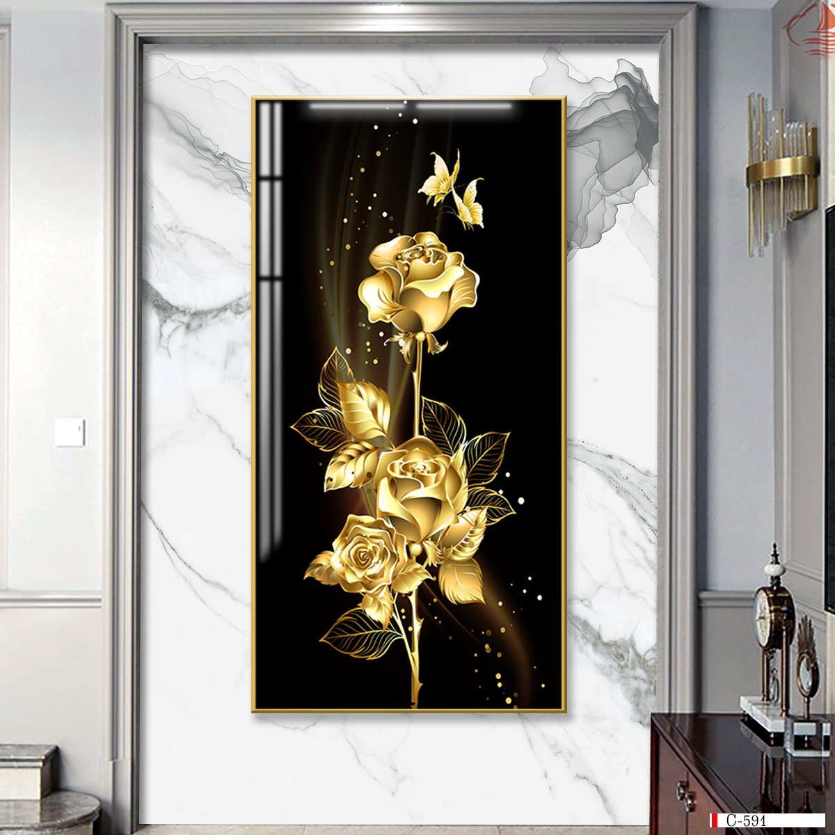 Tranh được làm từ chất liệu PVC bột đá cao cấp, in UV Nhật, phủ sứ pha lê tạo nên sự Sáng bóng, Sang trọng.