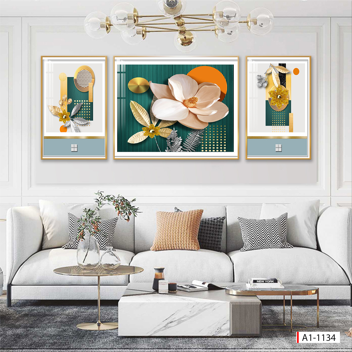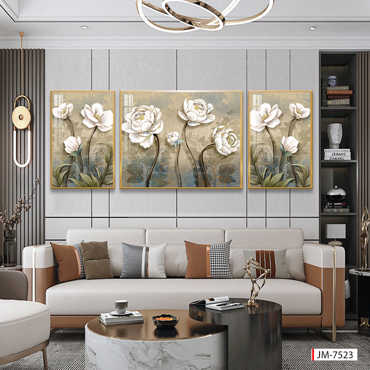 BST95 - TRANH TREO TƯỜNG KHUNG HỢP KIM TITAN - TRANG TRÍ PHÒNG KHÁCH, SAU SOFA - CHỦ ĐỀ HOA 3D, BÌNH HOA - GHÉP BỘ 3 BỨC