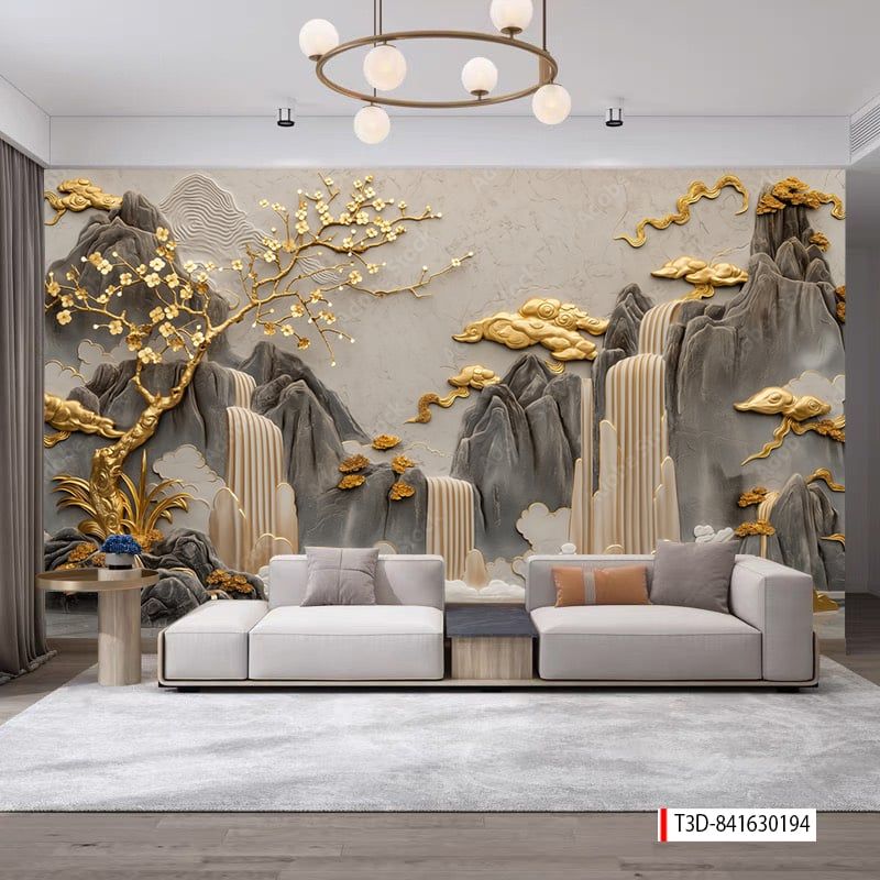 - Tranh vải 3D dán tường - vải lụa kim sa phủ bóng ít bám bụi, dễ lau chùi vệ sinh, thi công nhanh gọn.