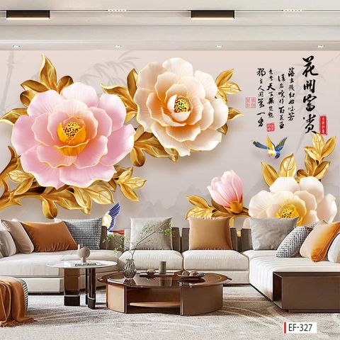 TRANH VẢI DÁN TƯỜNG HOA 3D - TRANH DÁN TƯỜNG PHÒNG KHÁCH, PHÒNG NGỦ