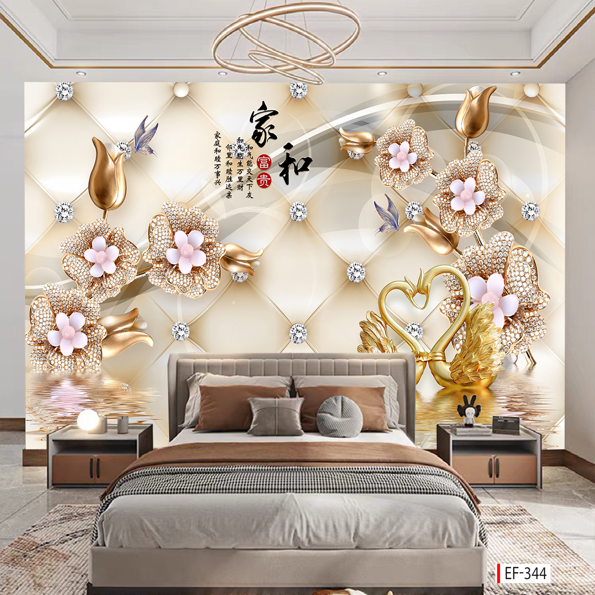 - Tranh vải 3D dán tường - vải lụa kim sa phủ bóng ít bám bụi, dễ lau chùi vệ sinh, thi công nhanh gọn.