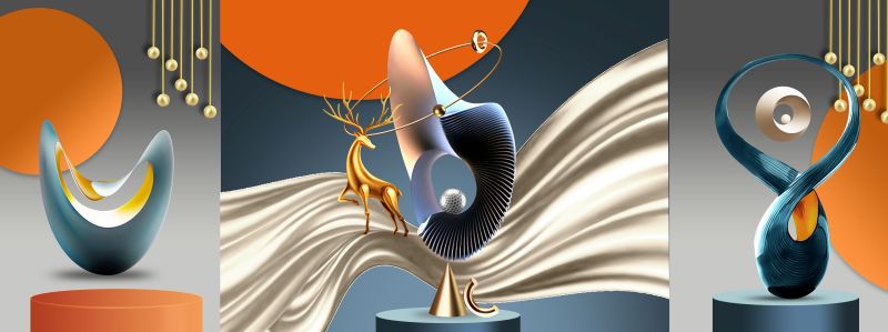 | Thương hiệu: Tranh 3D Tùng Dương | Hình thức: tranh treo tường ghép bộ 3 bức | Tên: tranh Hươu tài lộc hiện đại |