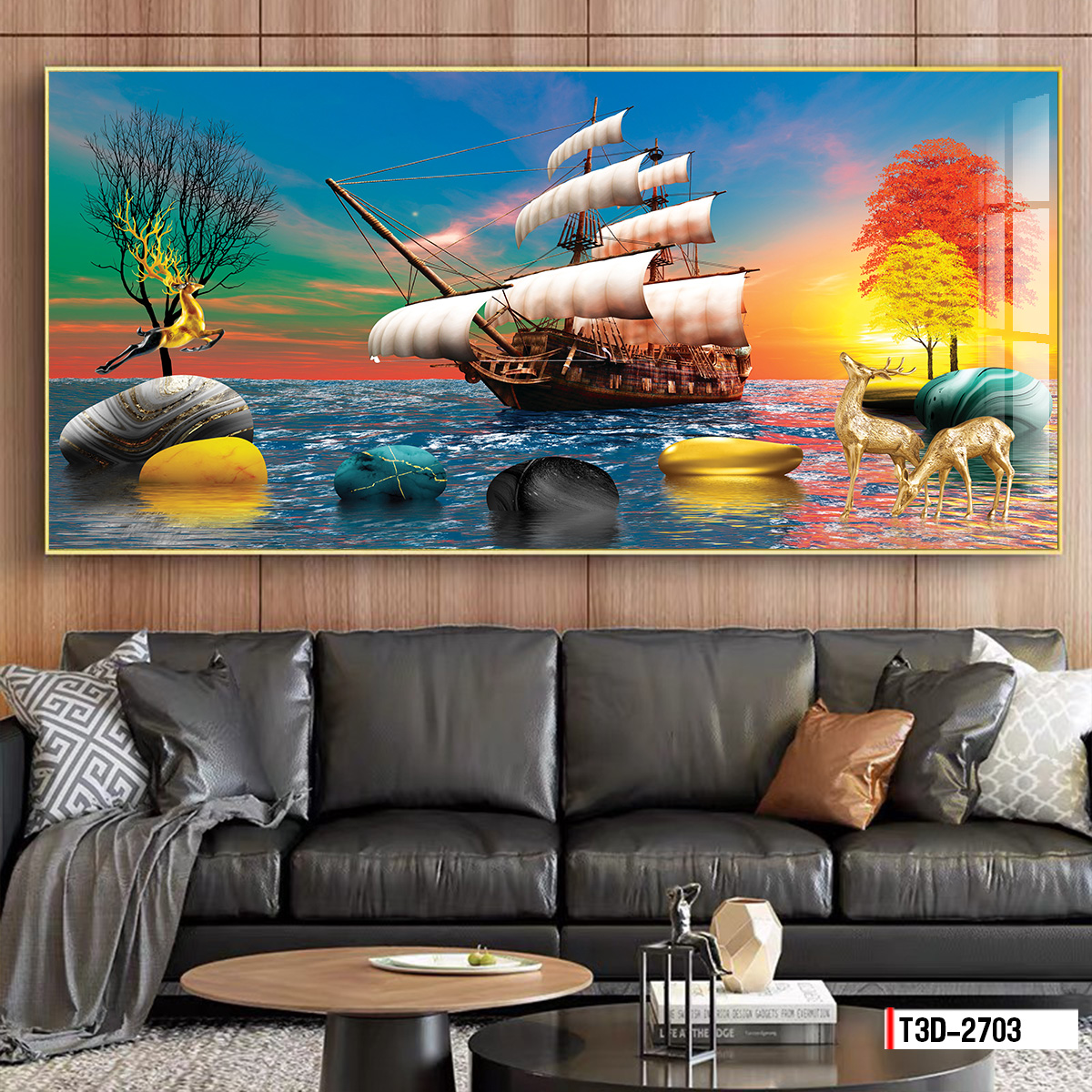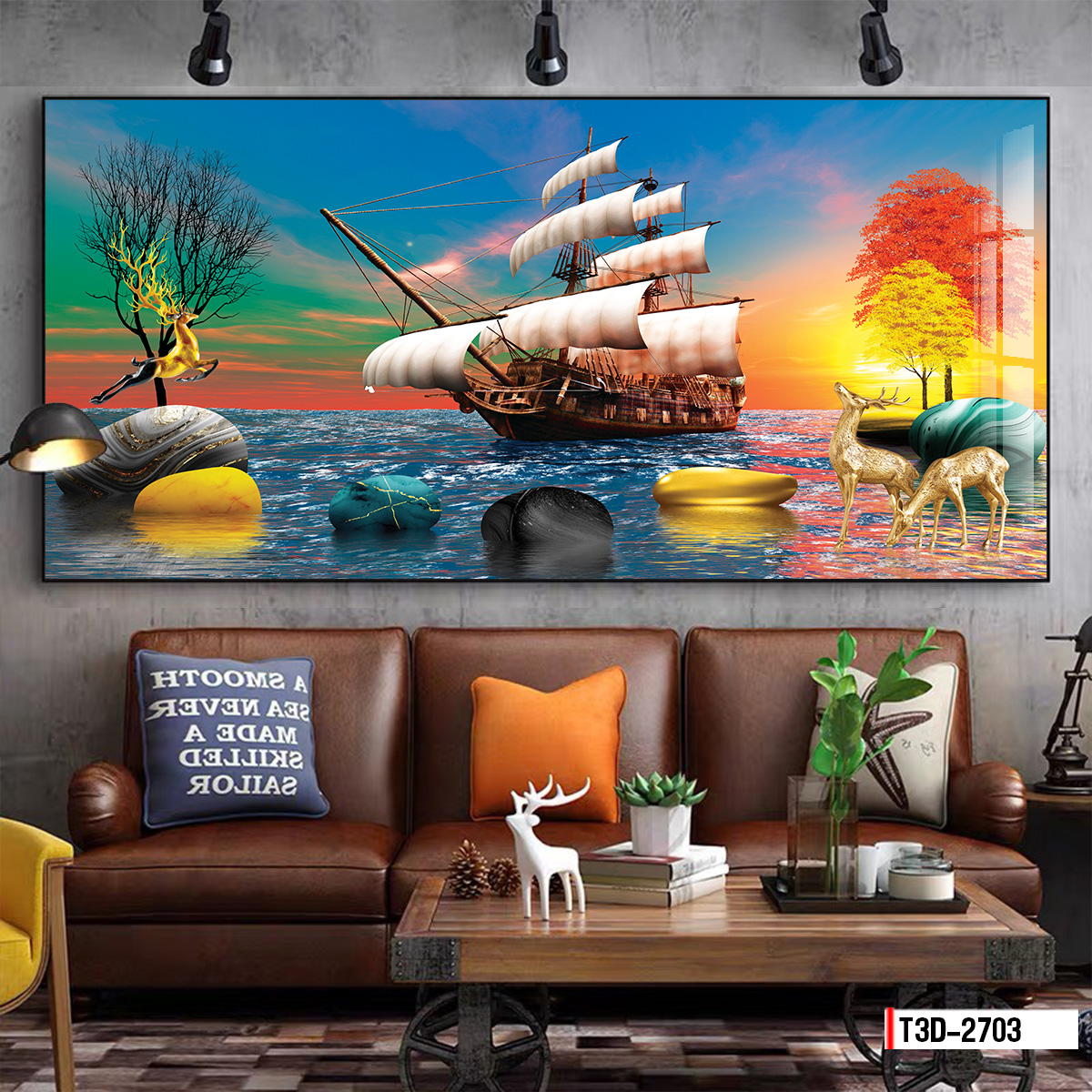 | Thương hiệu: Tranh 3D Tùng Dương | Hình thức: tranh treo tường ghép bộ 3 bức | Tên: tranh Thuận buồm xuôi gió |