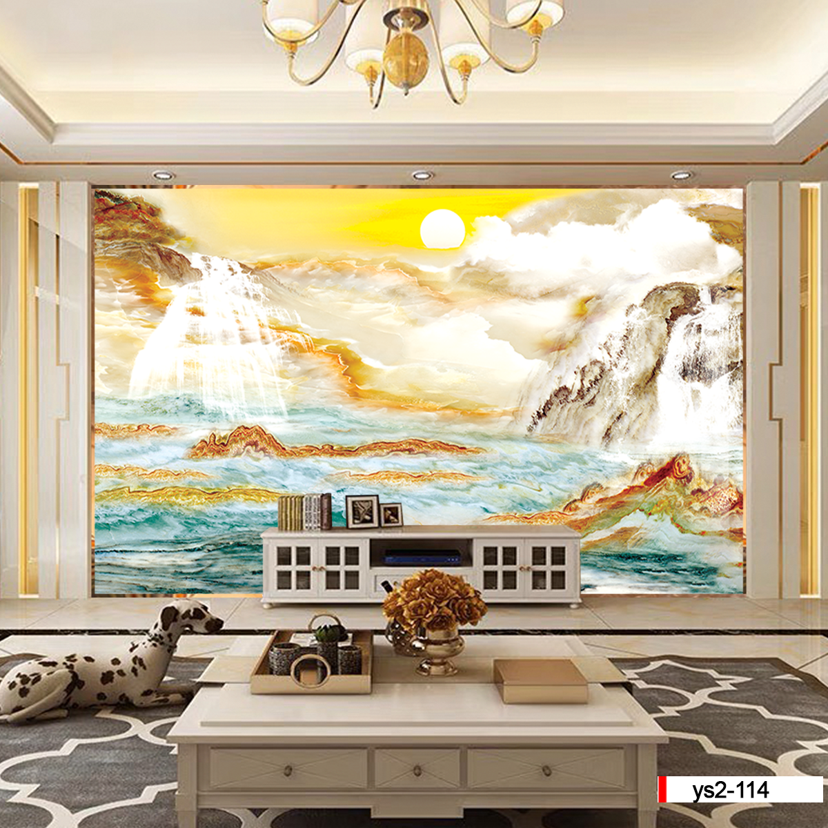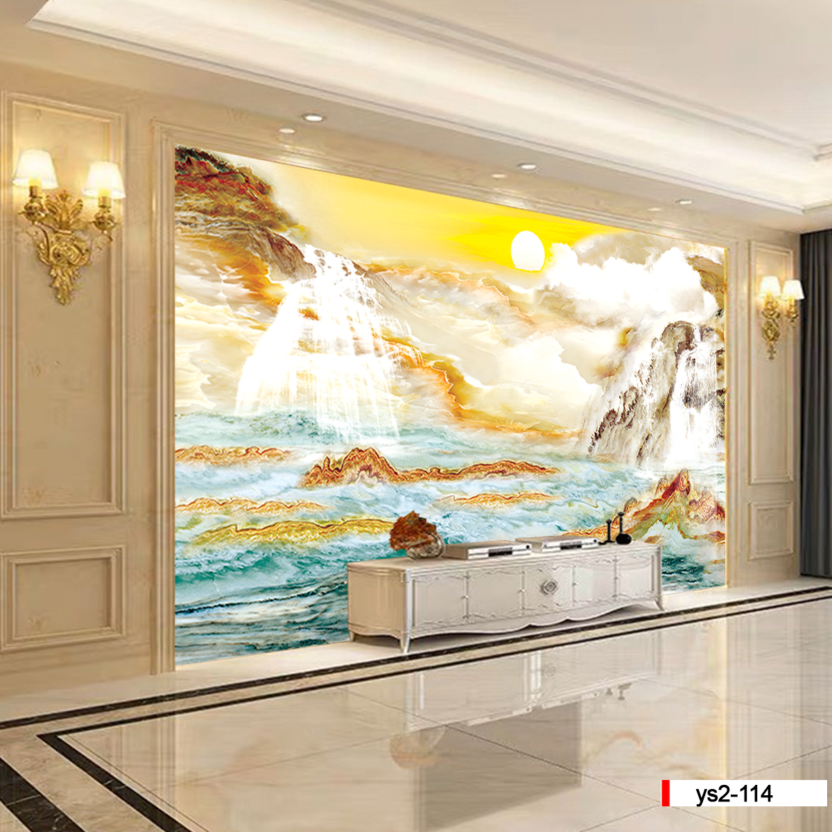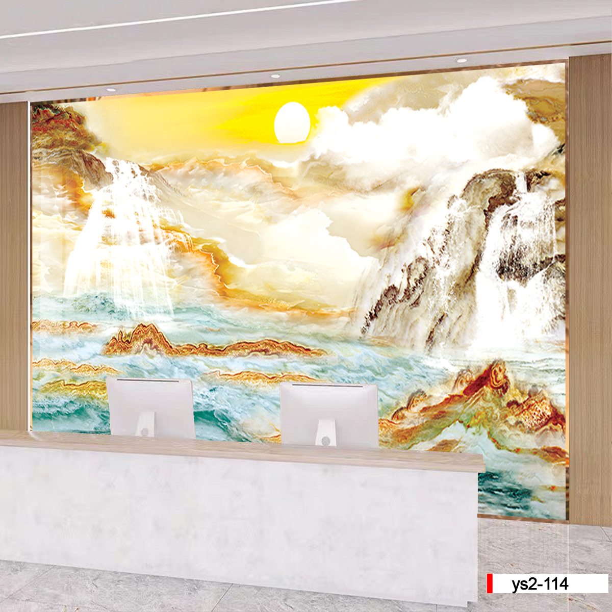| Xuất xứ: Tranh 3D Tùng Dương, thành phố Hải Phòng, Việt Nam | Vị trí áp dụng: vách trang trí phòng khách, phòng ngủ, chiếu nghỉ, quầy lễ tân... | Phong cách: vân đá-vân mây |