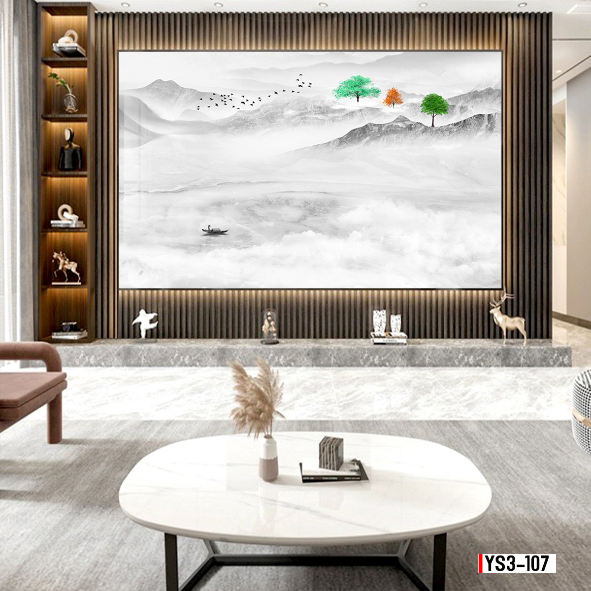 Tranh vân đá phong cảnh thích hợp cho trang trí phòng khách, kệ ti vi, nơi được coi là không gian nội thất chính của ngôi nhà. Tạo nên một không gian trang trọng nhã nhặn vừa hiện đại lại vừa cổ điển mà ít một loại đồ trang trí nào có thể làm được.