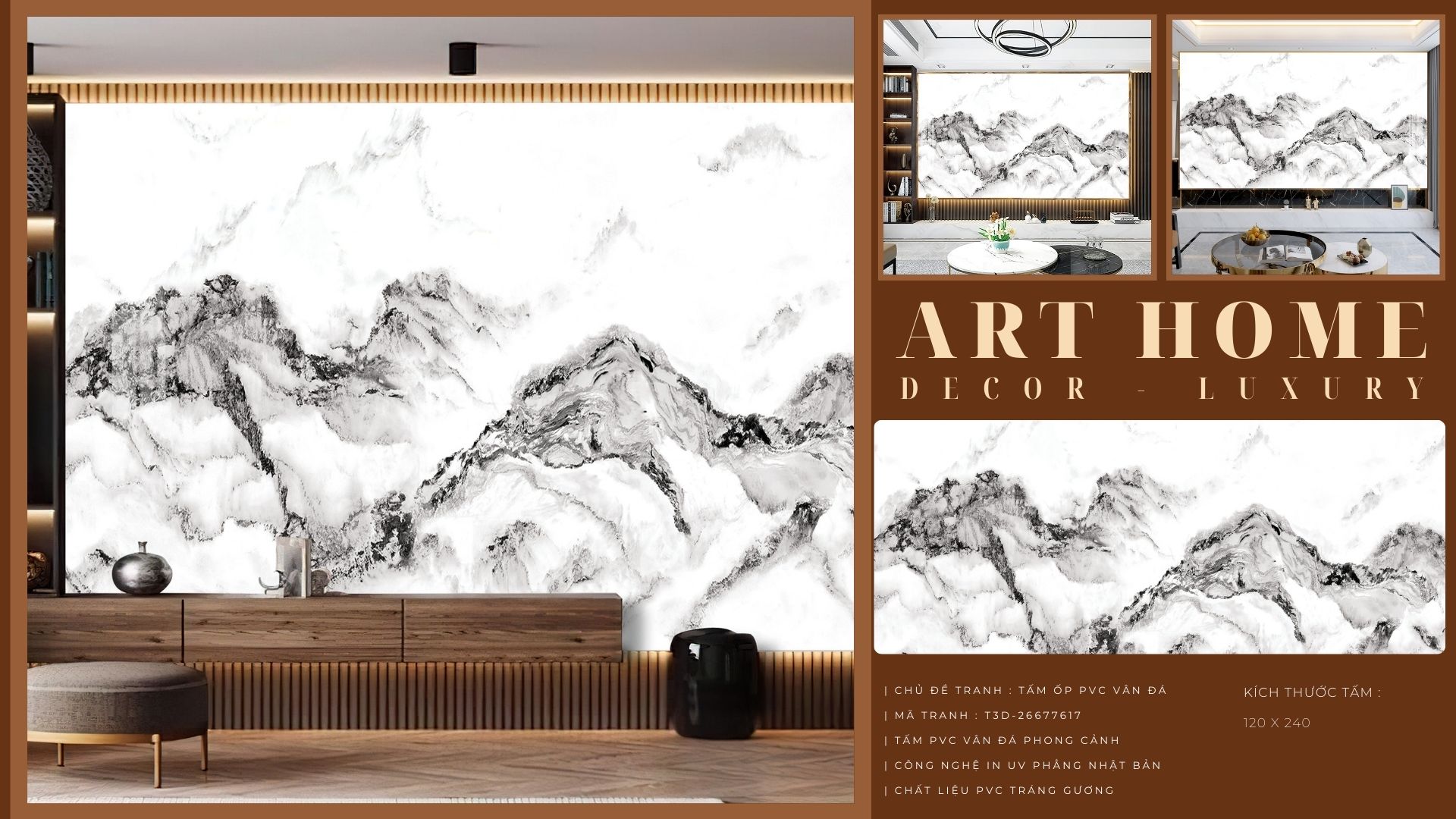 | Chất liệu | Tấm PVC bột đá cao cấp, in khắc UV Nhật ánh sáng xanh |