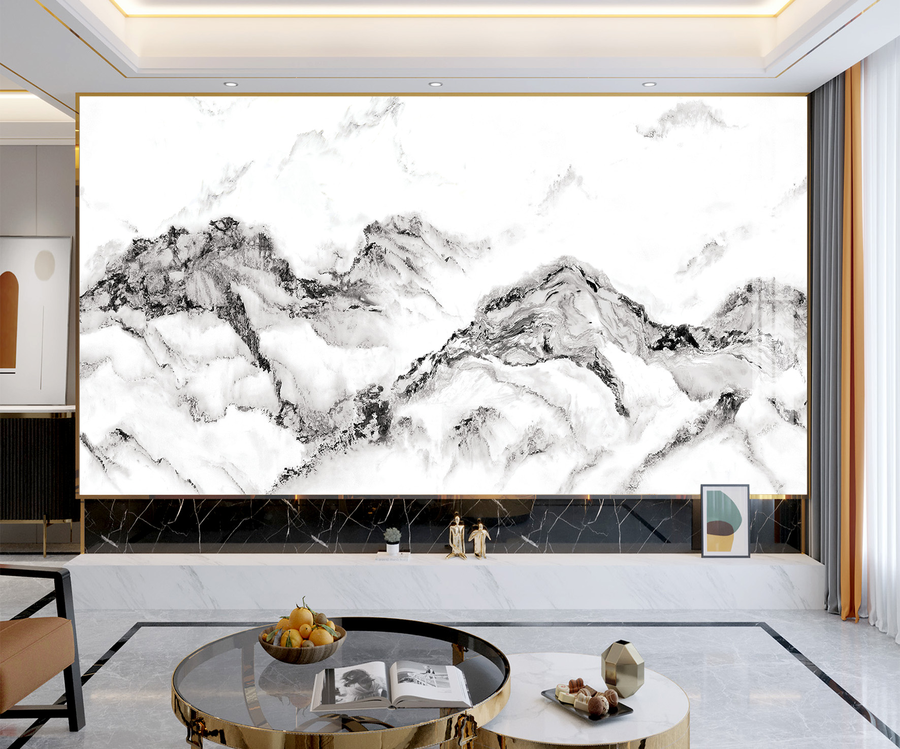 - Tranh vân đá thích hợp cho trang trí phòng khách, kệ ti vi, nơi được coi là không gian nội thất chính của ngôi nhà. Tạo nên một không gian trang trọng nhã nhặn vừa hiện đại lại vừa cổ điển mà ít một loại đồ trang trí nào có thể làm được.