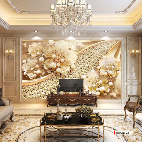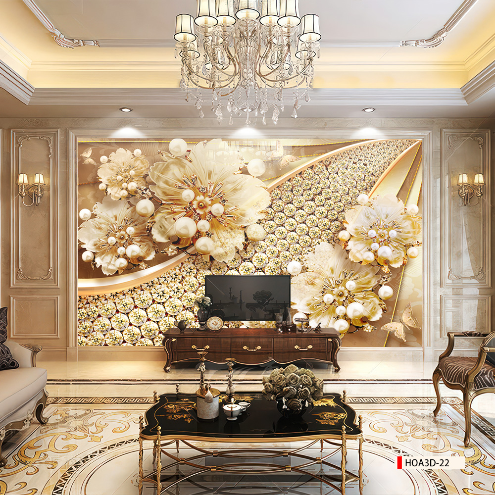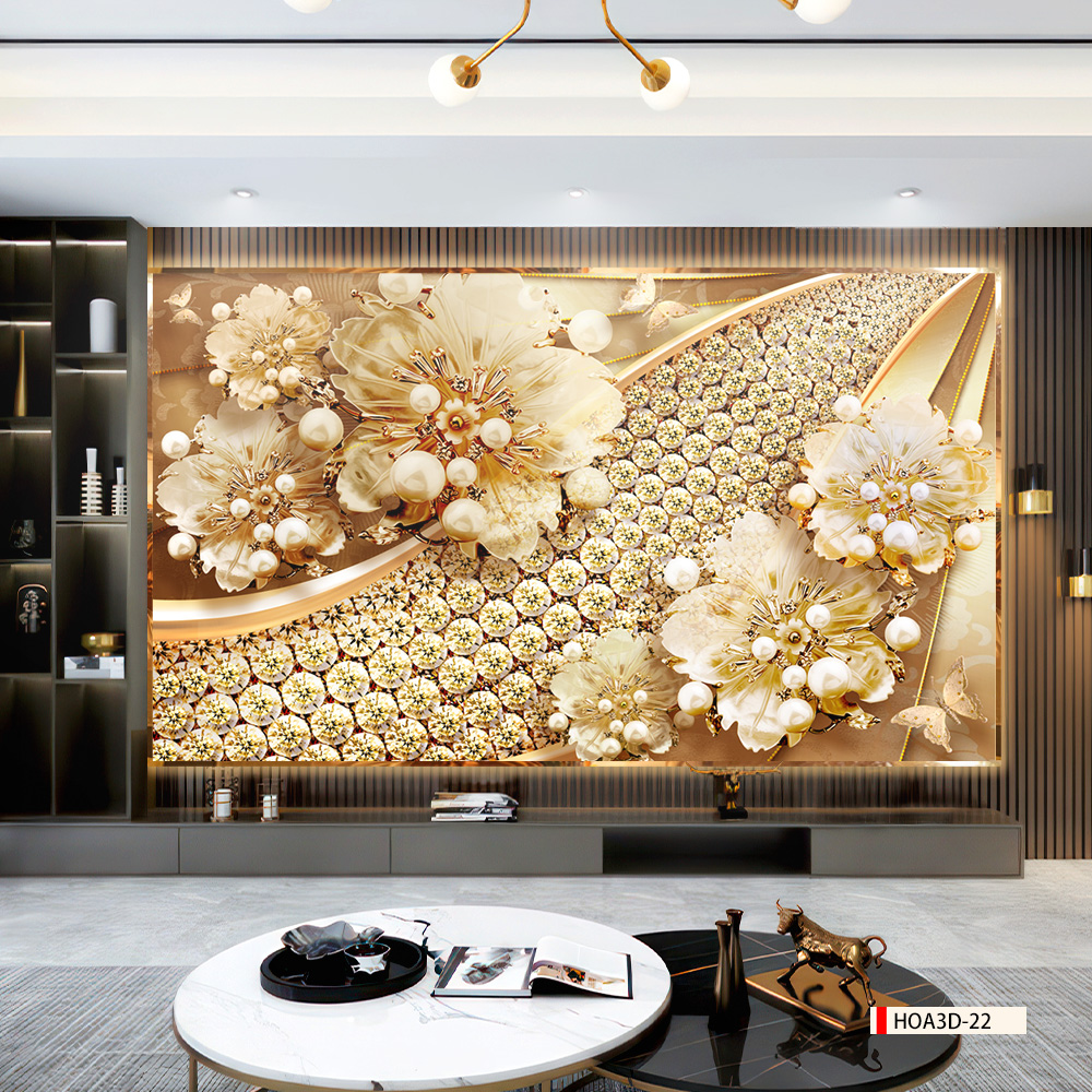 TRANH PVC ỐP TƯỜNG PHÒNG KHÁCH - TRANH VÂN ĐÁ HOA 3D