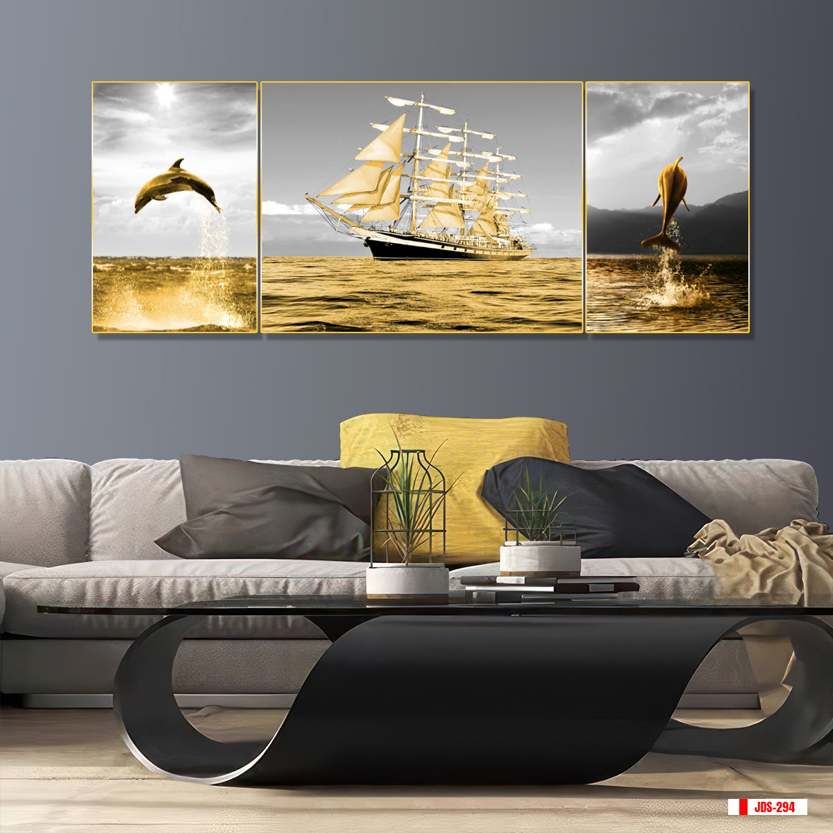 | Thương hiệu: Tranh 3D Tùng Dương | Hình thức: tranh treo tường ghép bộ 3 bức | Tên: tranh Thuận buồm xuôi gió |