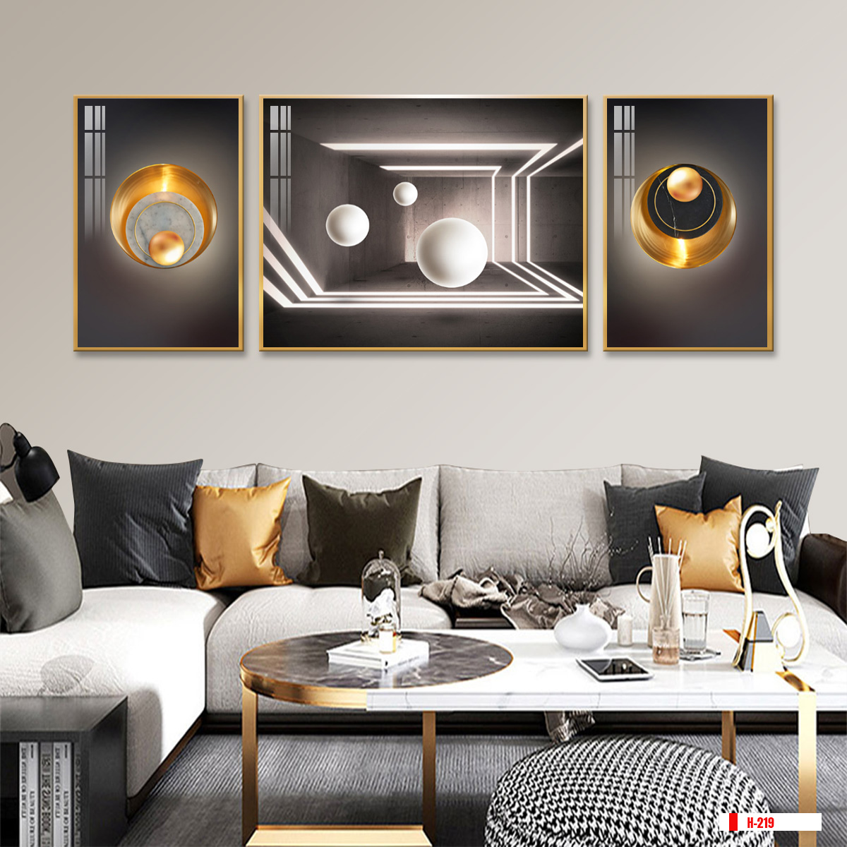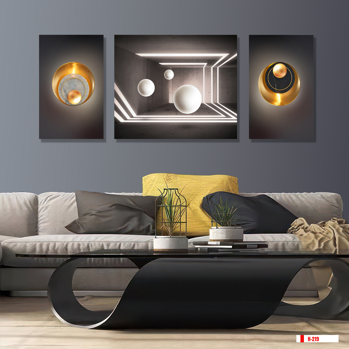 | Thương hiệu: Tranh 3D Tùng Dương | Hình thức: tranh treo tường ghép bộ 3 bức | Tên: tranh hiện đại trừu tượng |