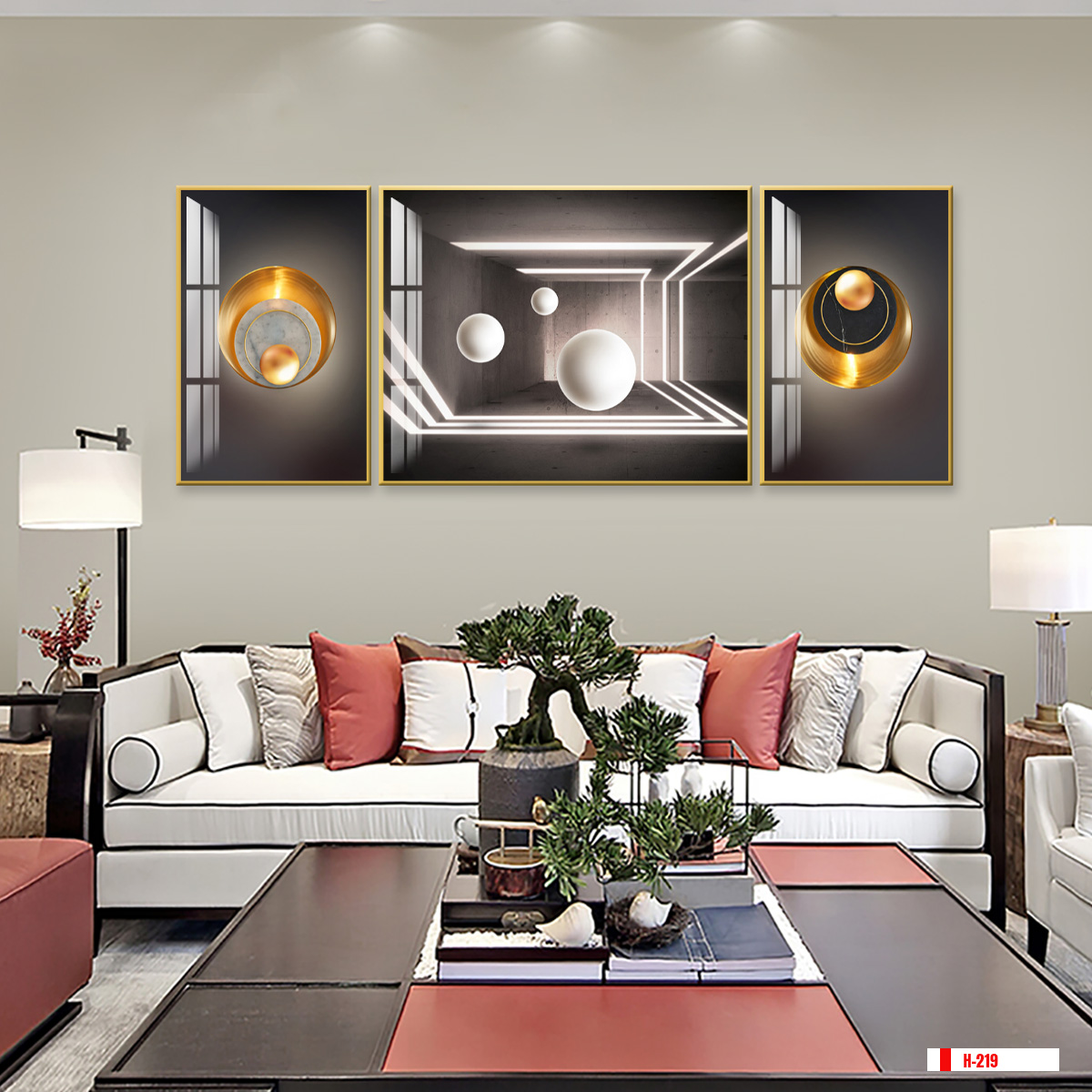 Những bức Tranh treo tường hiện đại trừu tượng thích hợp với phong cách nội thất hiện đại tối giản, tạo nên không gian sống trẻ trung, năng động và không kém phần sang trọng.