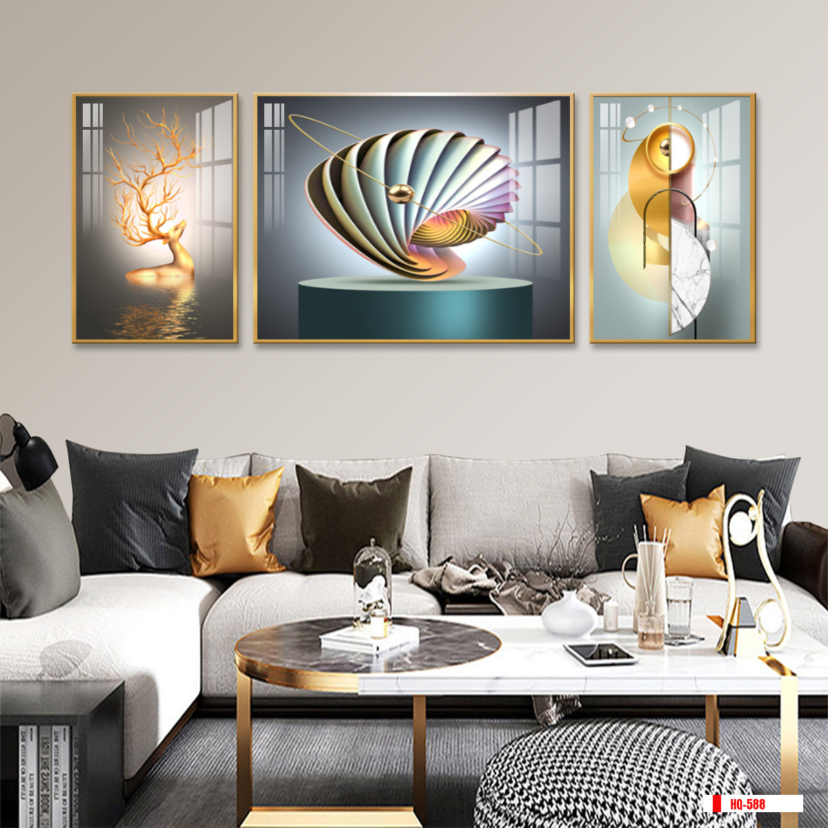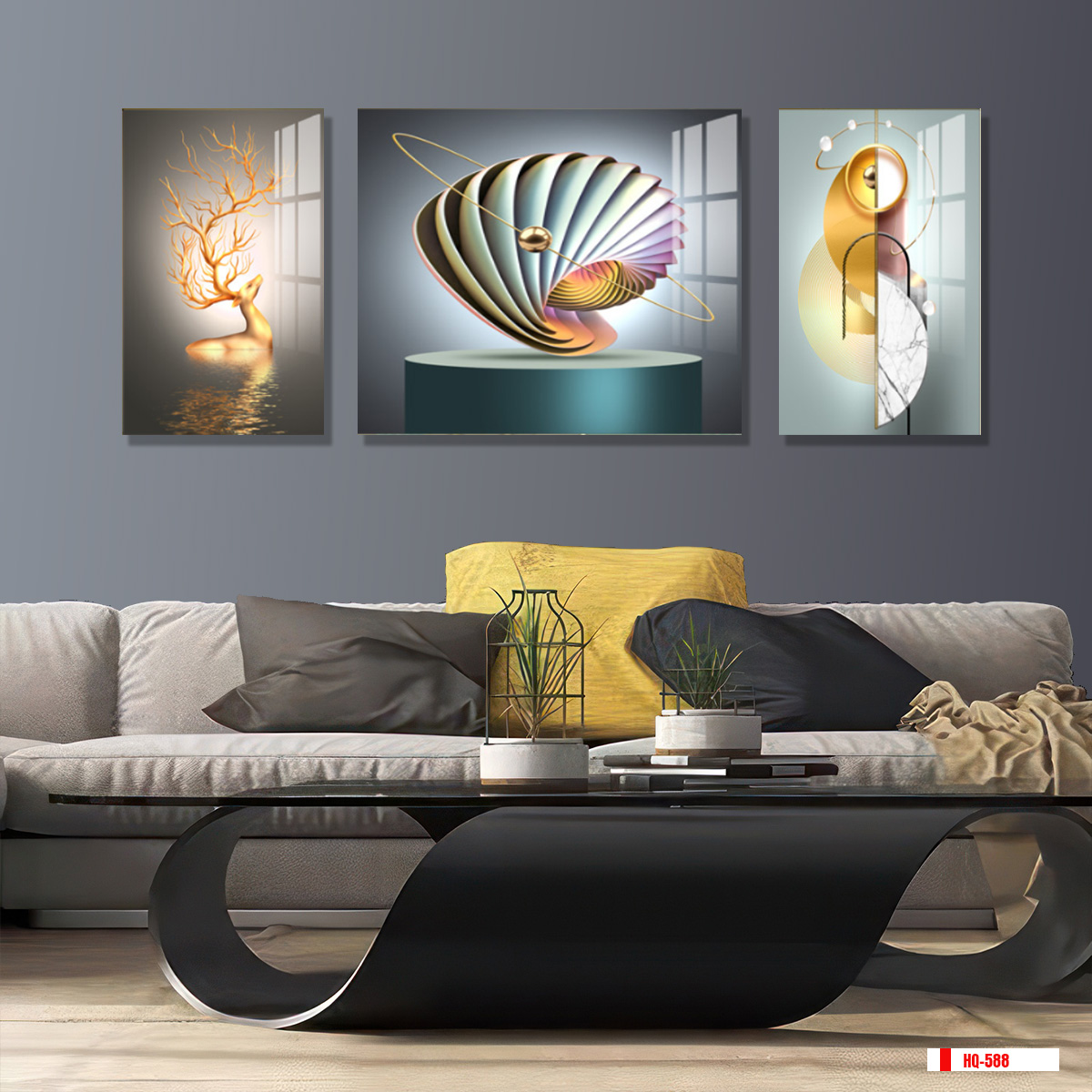 | Thương hiệu: Tranh 3D Tùng Dương | Hình thức: tranh treo tường ghép bộ 3 bức | Tên: tranh hiện đại trừu tượng |