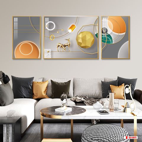 | Thương hiệu: Tranh 3D Tùng Dương | Hình thức: tranh treo tường ghép bộ 3 bức | Tên: tranh hiện đại trừu tượng |