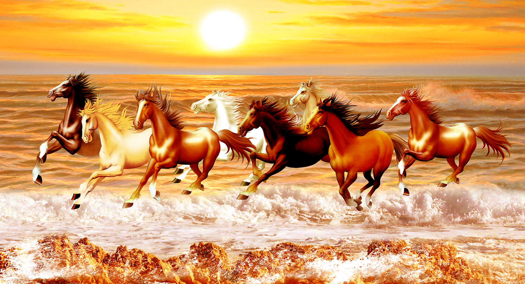 Ý nghĩa tranh: Tranh Mã Đáo Thành Công hay còn gọi là Tranh Bát Mã là biểu tượng của lời chúc may mắn thành công, đặc biệt ý nghĩa với những người đi làm ăn, công tác xa.