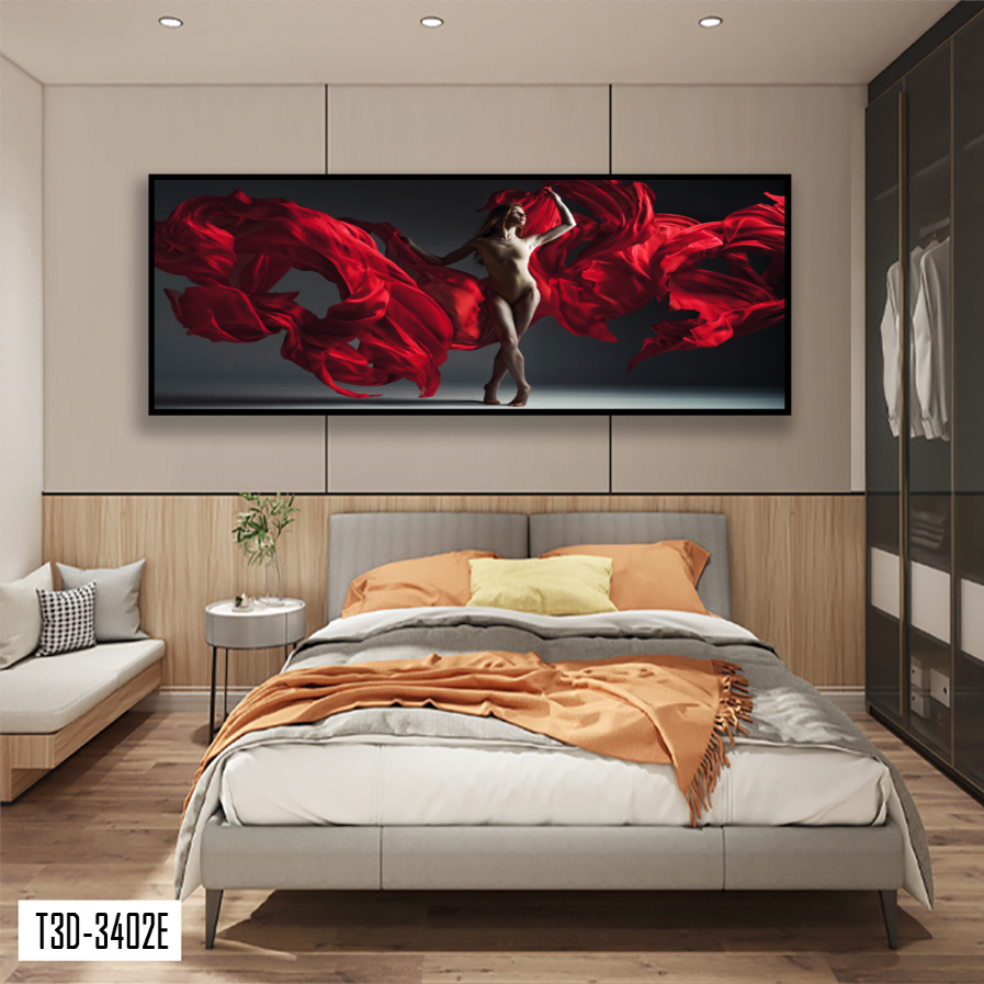 Phòng ngủ là không gian mang tính cá nhân cao. Do vậy tranh đầu giường ngủ phần nào đó nói lên tính cách và cuộc sống thường ngày của gia chủ. Bức tranh phòng ngủ có đặc điểm là mang sắc thái nhẹ nhàng, màu sắc hài hòa nhưng đủ để nổi bật nhất trong căn phòng. Đối với những không gian cần gia tăng sự lãng mạn, cảm xúc thăng hoa như ở Spa, Khách sạn thì bạn có thể tham khảo mẫu tranh treo Mỹ nữ và Lụa này.
