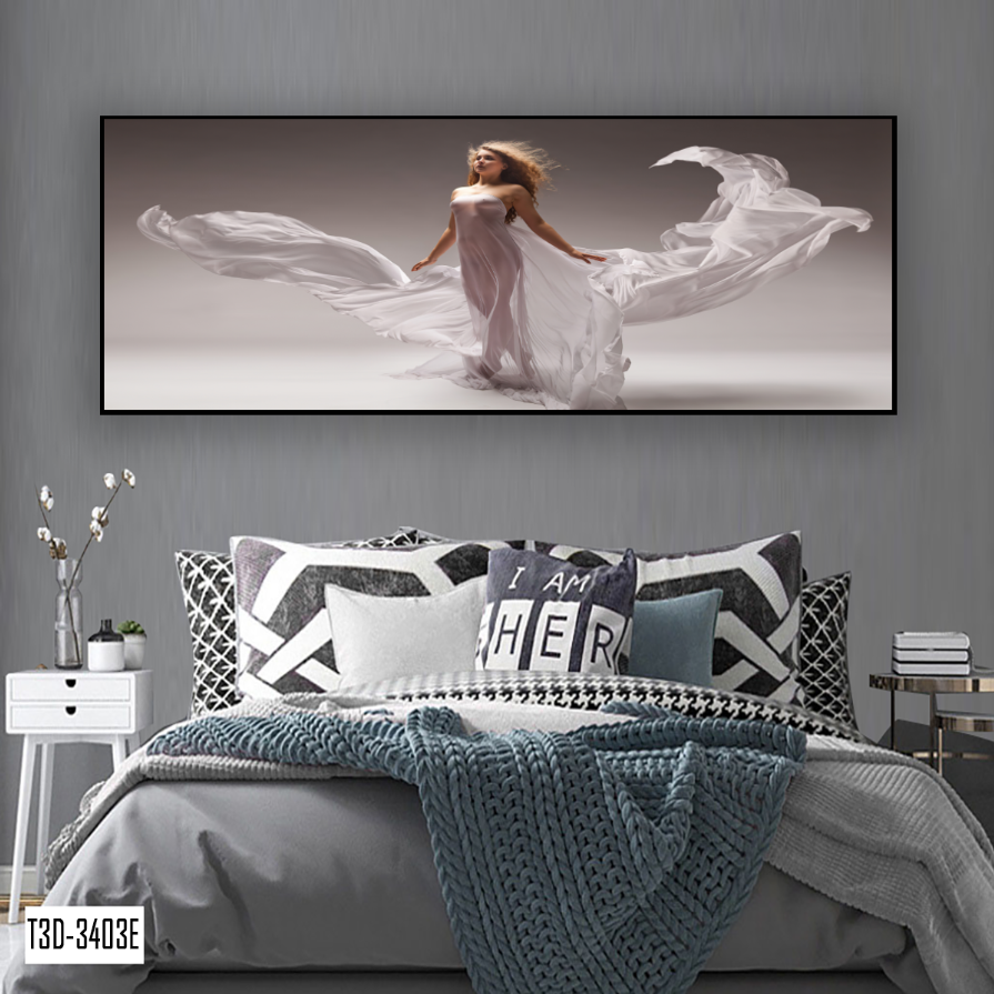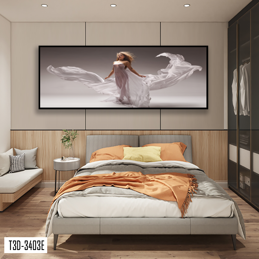 Phòng ngủ là không gian mang tính cá nhân cao. Do vậy tranh đầu giường ngủ phần nào đó nói lên tính cách và cuộc sống thường ngày của gia chủ. Bức tranh phòng ngủ có đặc điểm là mang sắc thái nhẹ nhàng, màu sắc hài hòa nhưng đủ để nổi bật nhất trong căn phòng. Đối với những không gian cần gia tăng sự lãng mạn, cảm xúc thăng hoa như ở Spa, Khách sạn thì bạn có thể tham khảo mẫu tranh treo Mỹ nữ và Lụa này.