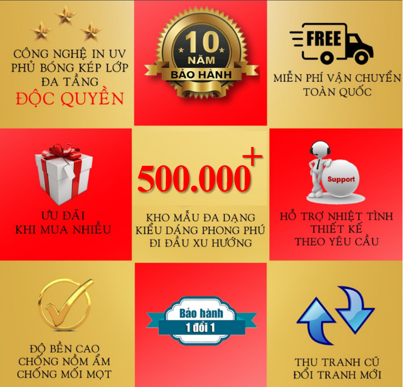 | Công nghệ: in UV Nhật, phủ sứ pha lê | Bảo hành: 10 năm | |