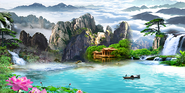 TRANH TREO PHÒNG KHÁCH PHONG THỦY - TRANH SƠN THỦY HỮU TÌNH KHỔ LỚN