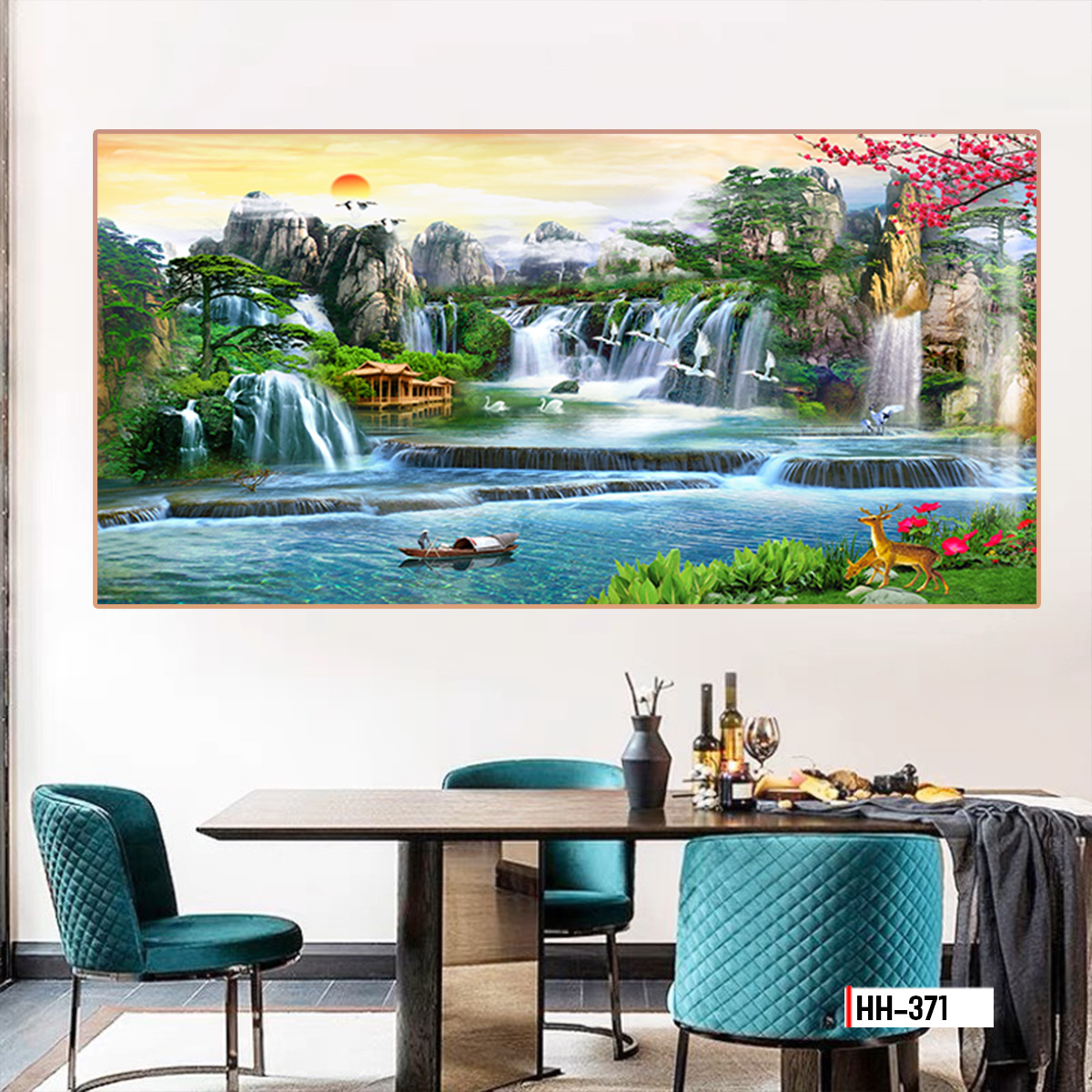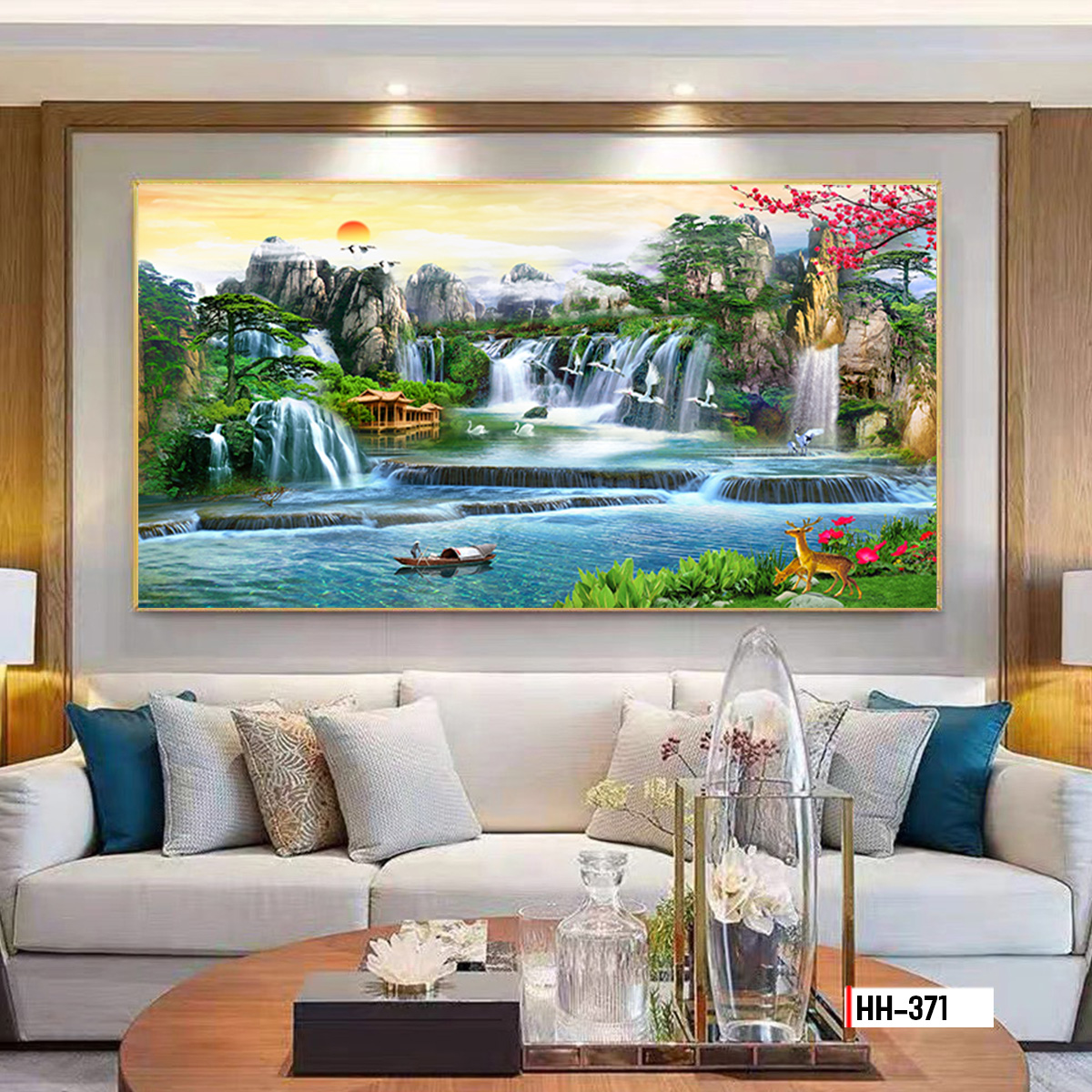 TRANH TREO PHÒNG KHÁCH PHONG THỦY - TRANH SƠN THỦY HỮU TÌNH KHỔ LỚN