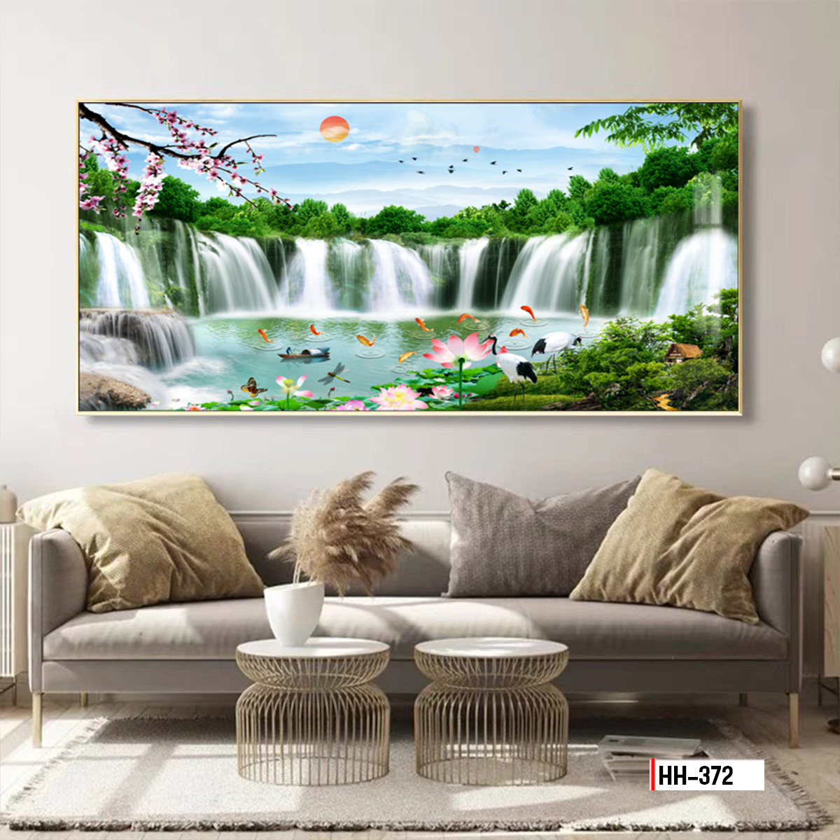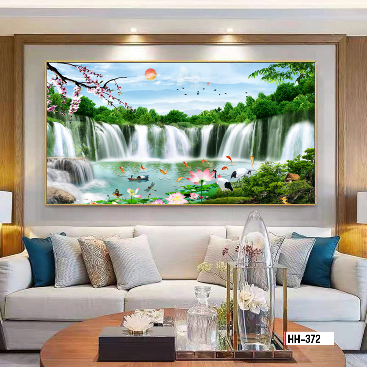 ✅ Vị trí khuyên dùng: Trang trí phòng khách sau ghế sofa.