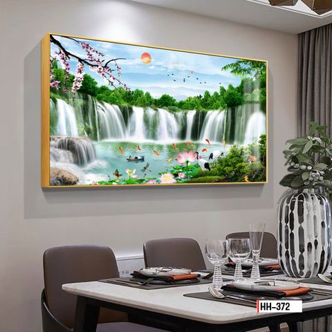 ✅ Chất liệu: Tranh treo phòng khách được làm từ tấm cốt PVC bột đá cao cấp in khắc UV Nhật ánh sáng xanh, sau đó được dưỡng, phủ lót rồi phủ bóng nhiệt kép lớp đa tầng, chạy hạ nhiệt và vệ sinh sạch sẽ, xịt khử.